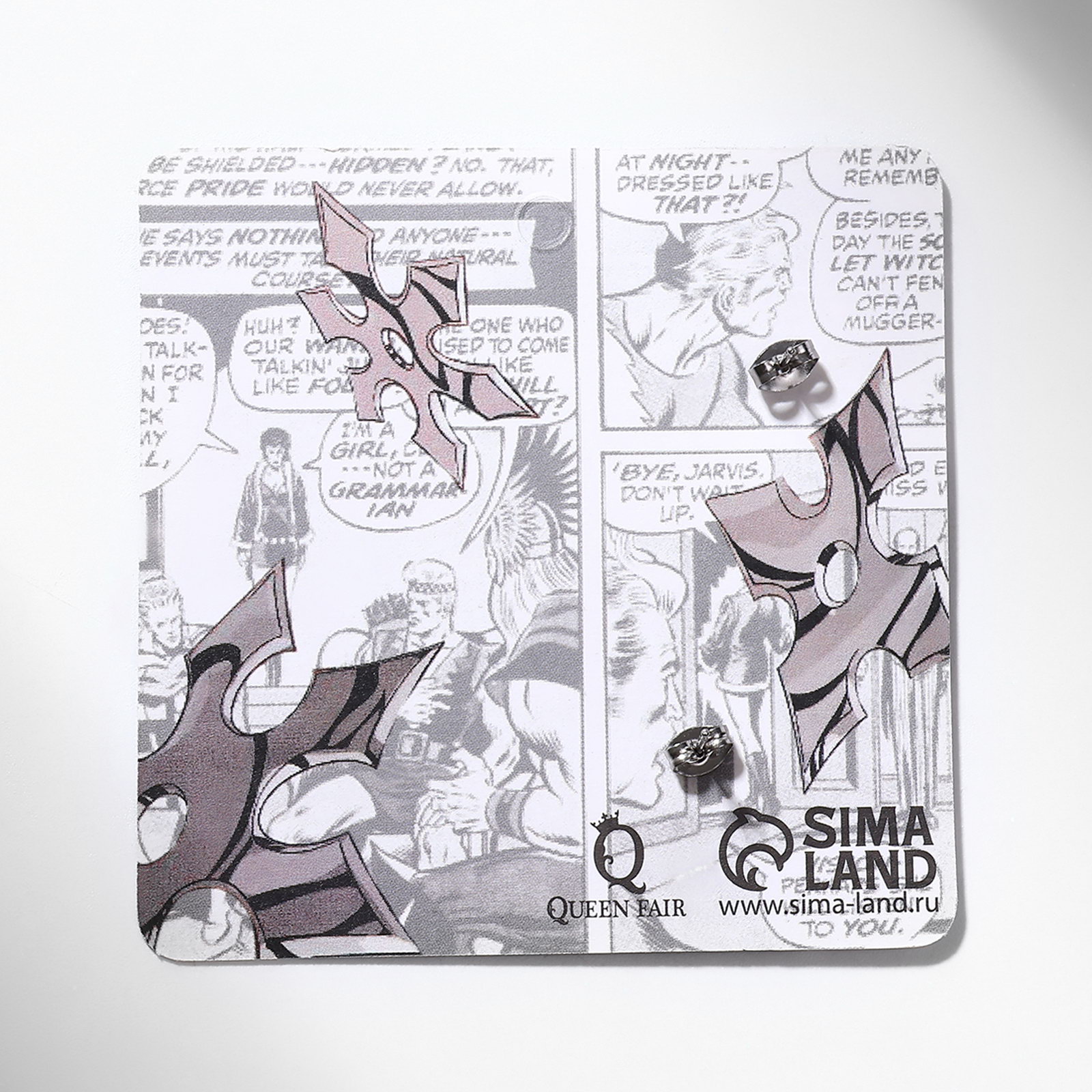 Серьги металл "Япония" сюрикены гвоздики, цвет серебро, 1.6x1.6x1.2 см., QF, Китай