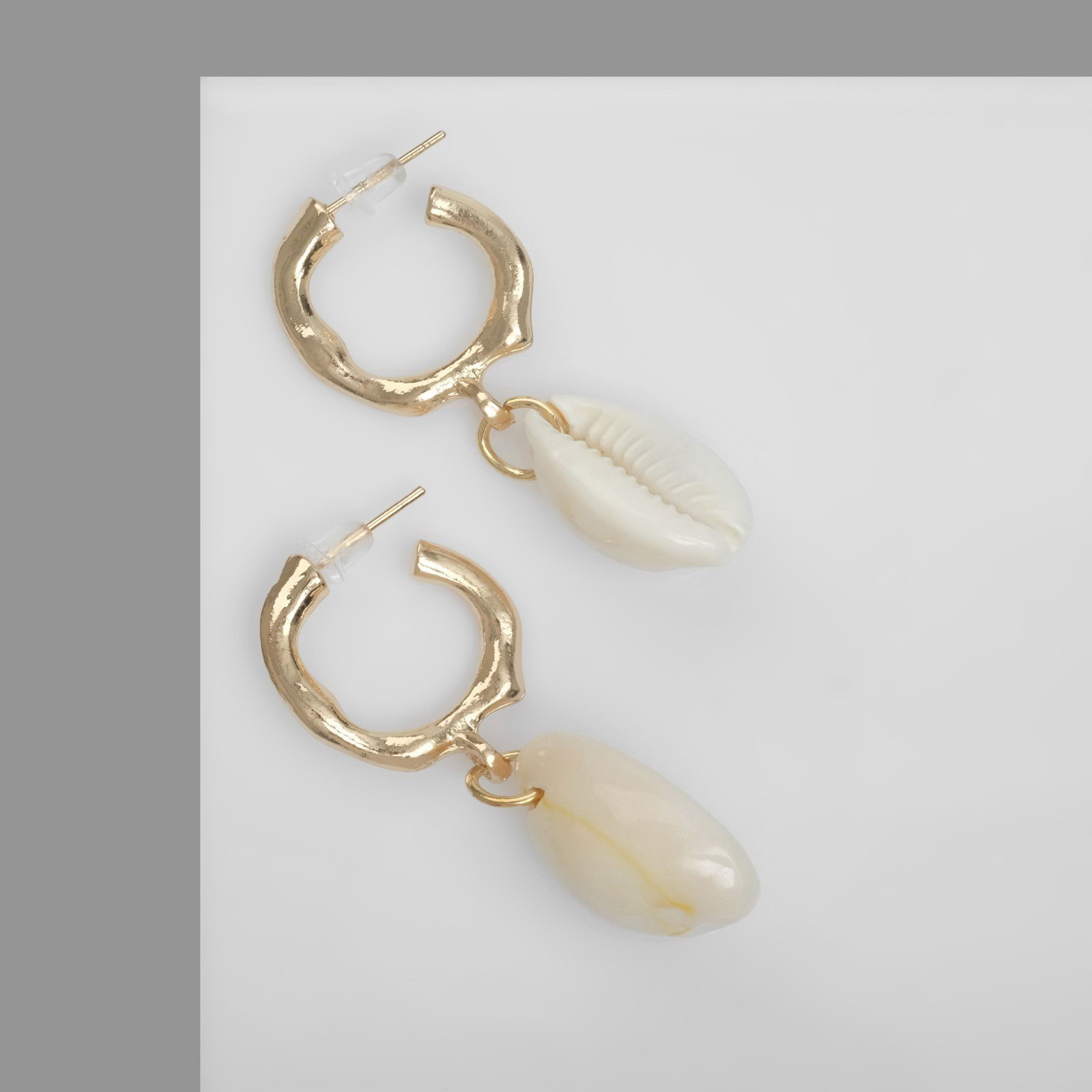 Серьги "Морские" с ракушками, цвет бежевый в золоте, 2x4.8x2.5 см., Queen fair, Китай