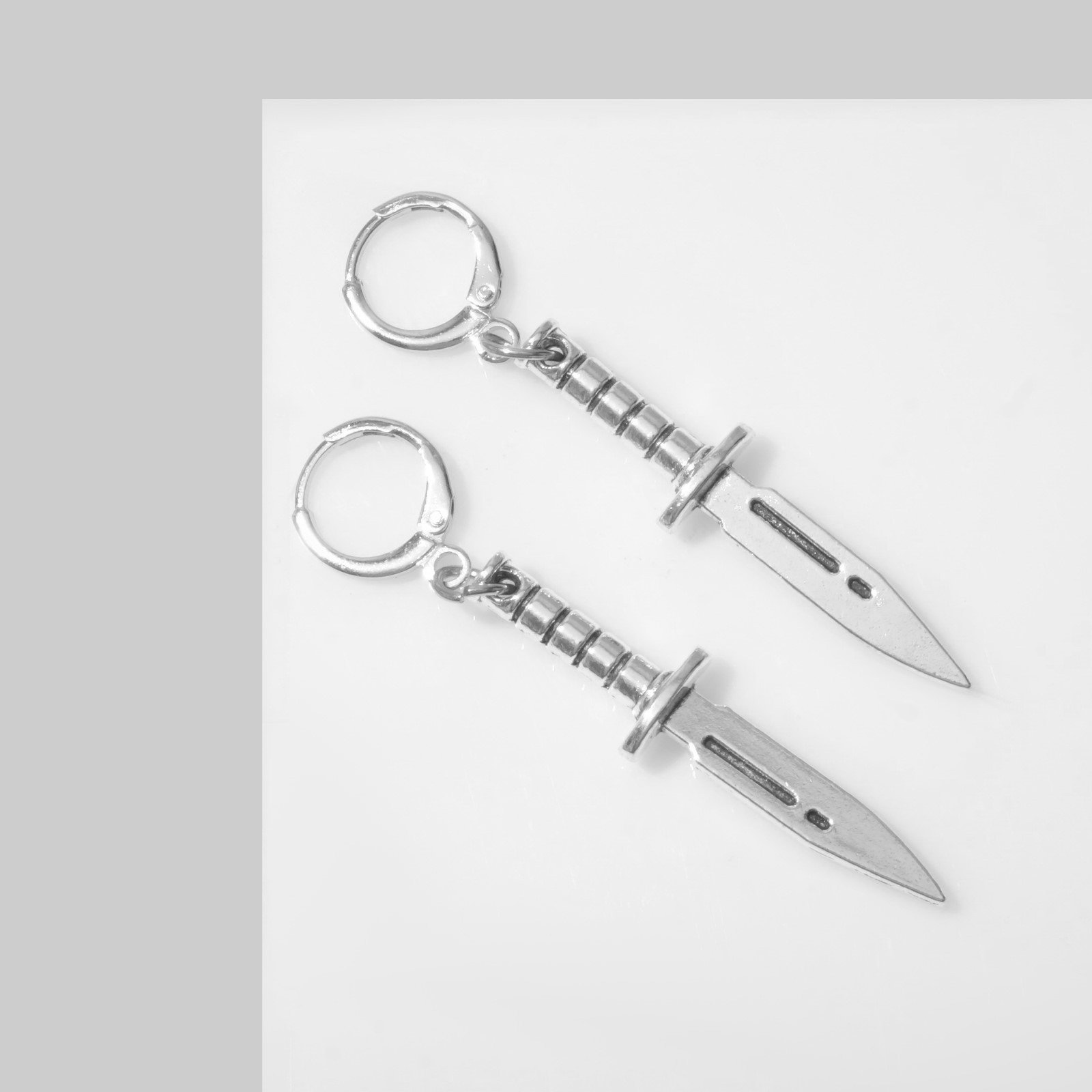 Серьги металл "Ножи" острые, цвет серебро, 0.5x5x1.1 см., QF, Китай