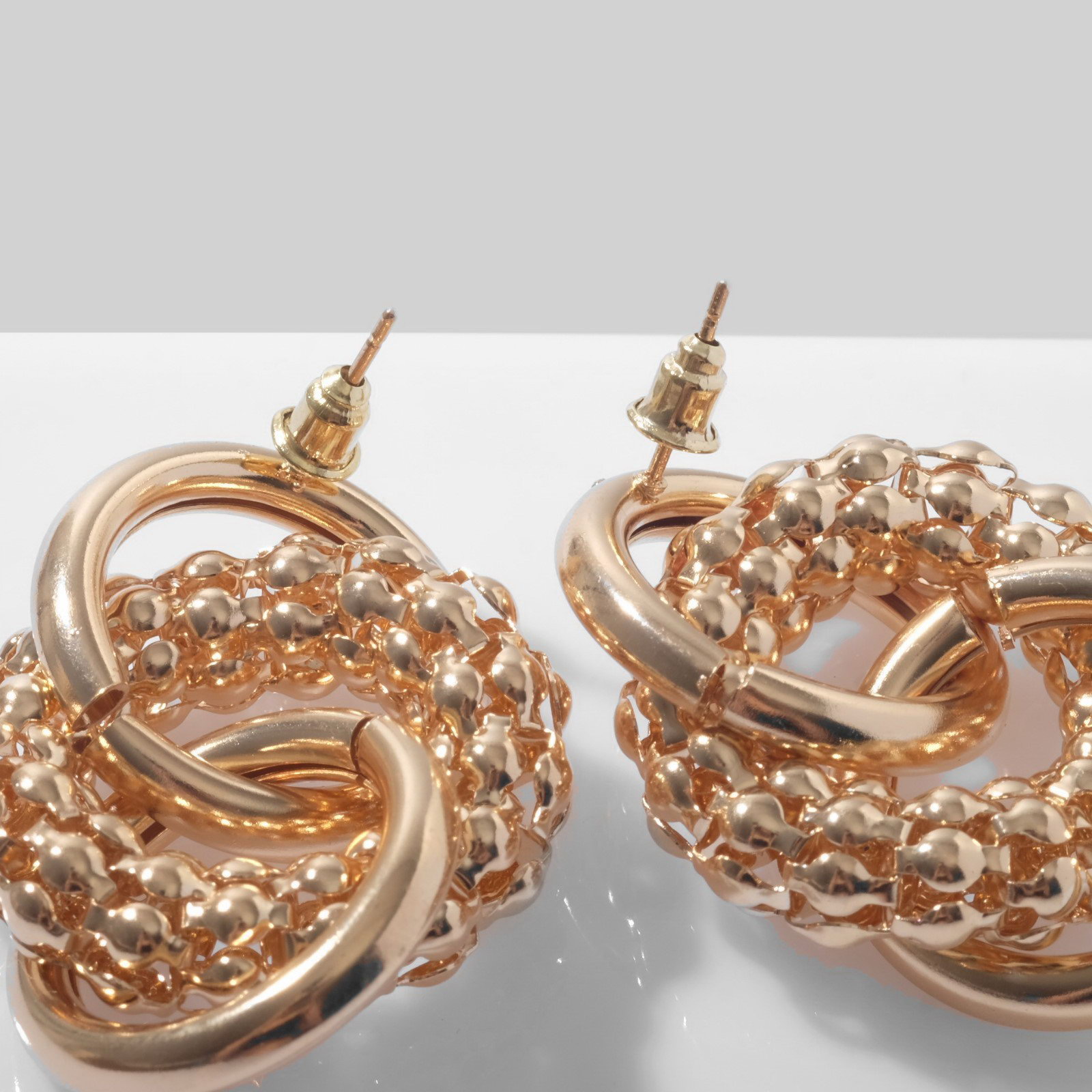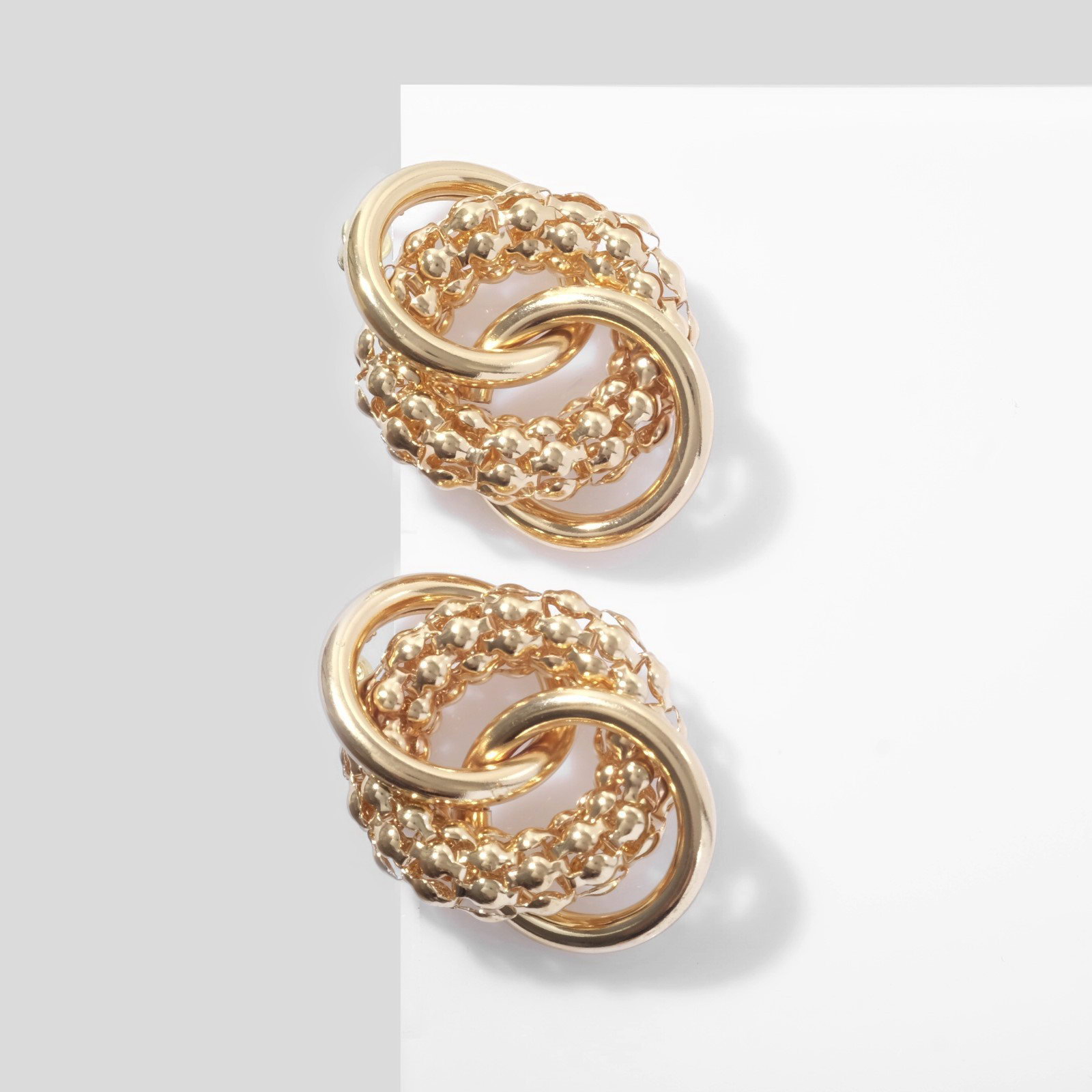 Серьги металл "Конго-кольца", цвет золото, 3x3.3x1 см., QF, Китай