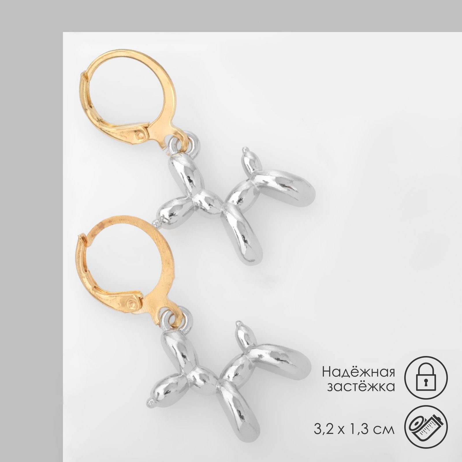 Серьги со съёмным элементом "Собачка" игрушечная, цвет серебро, 1.3x3.2x1.2 см., QF, Китай