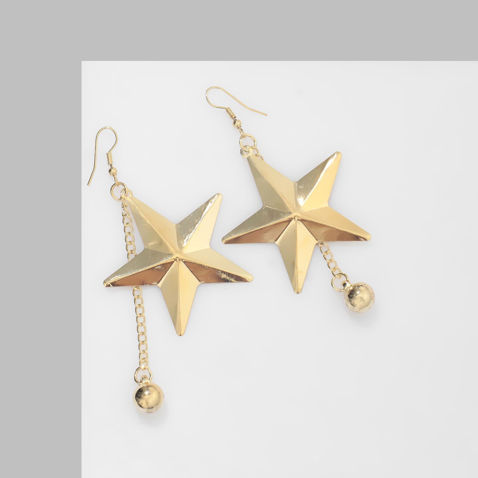 Серьги висячие "Звезда" с цепочками, цвет золото, 8 см, 4.5x8x1.2 см., QF, Китай