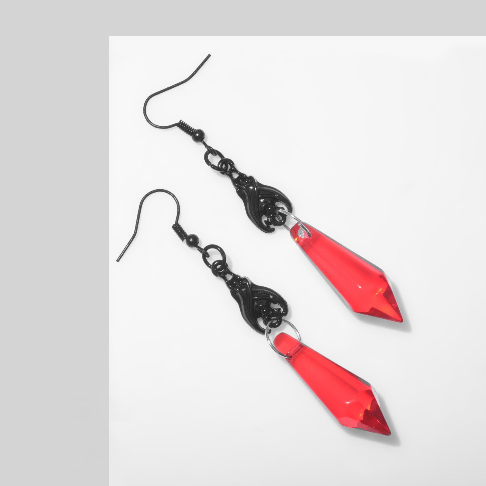 Серьги висячие "Готика" капли, цвет красный в чёрном металле, 7.8 см, 1.2x7.8x1.5 см., QF, Китай