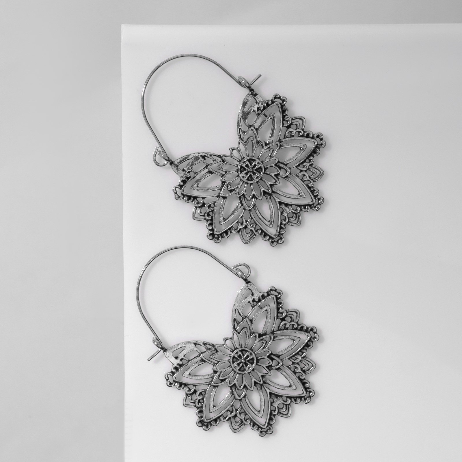 Серьги металл "Восток" цветок солнца, цвет чернёное серебро, 4x6x0.3 см., QF, Китай