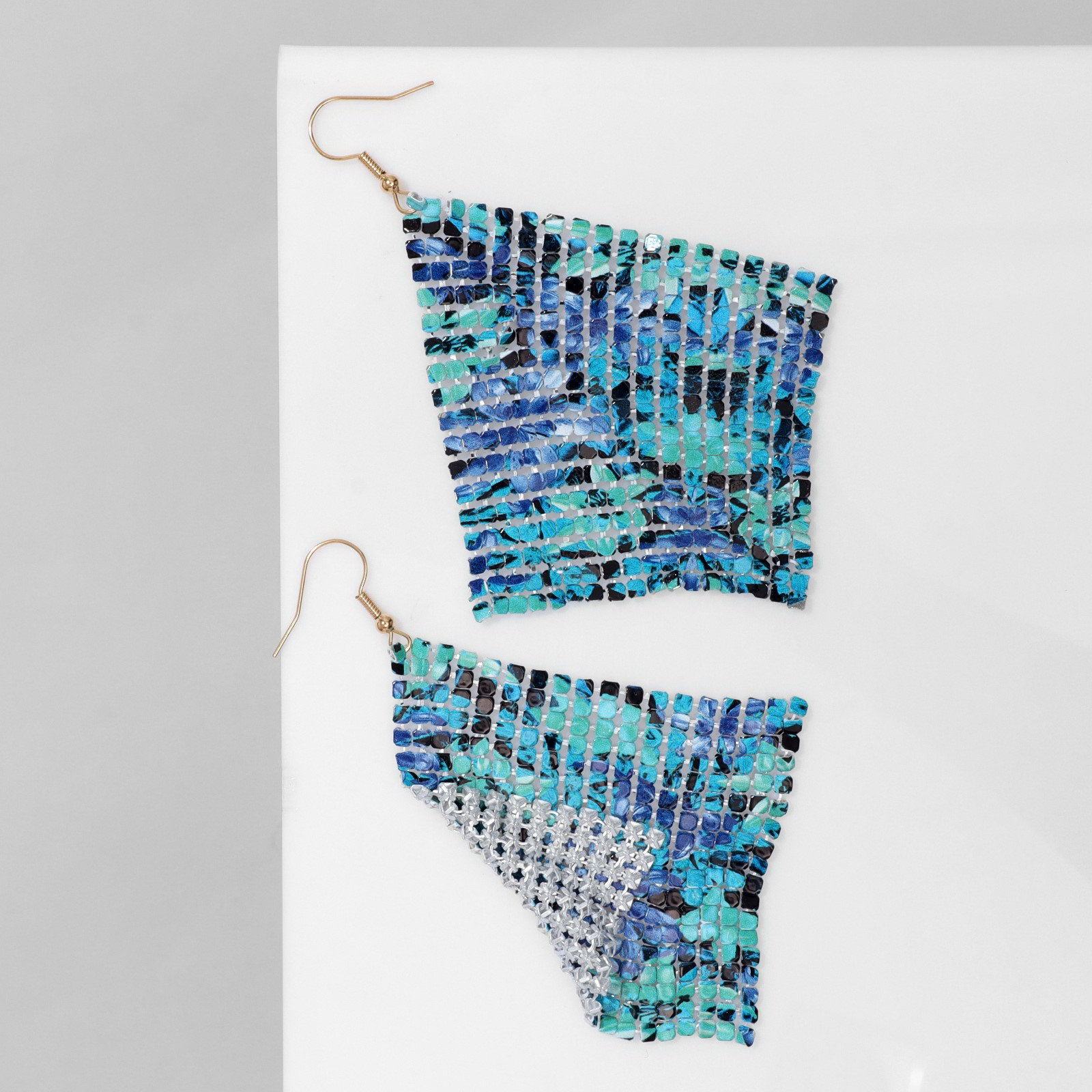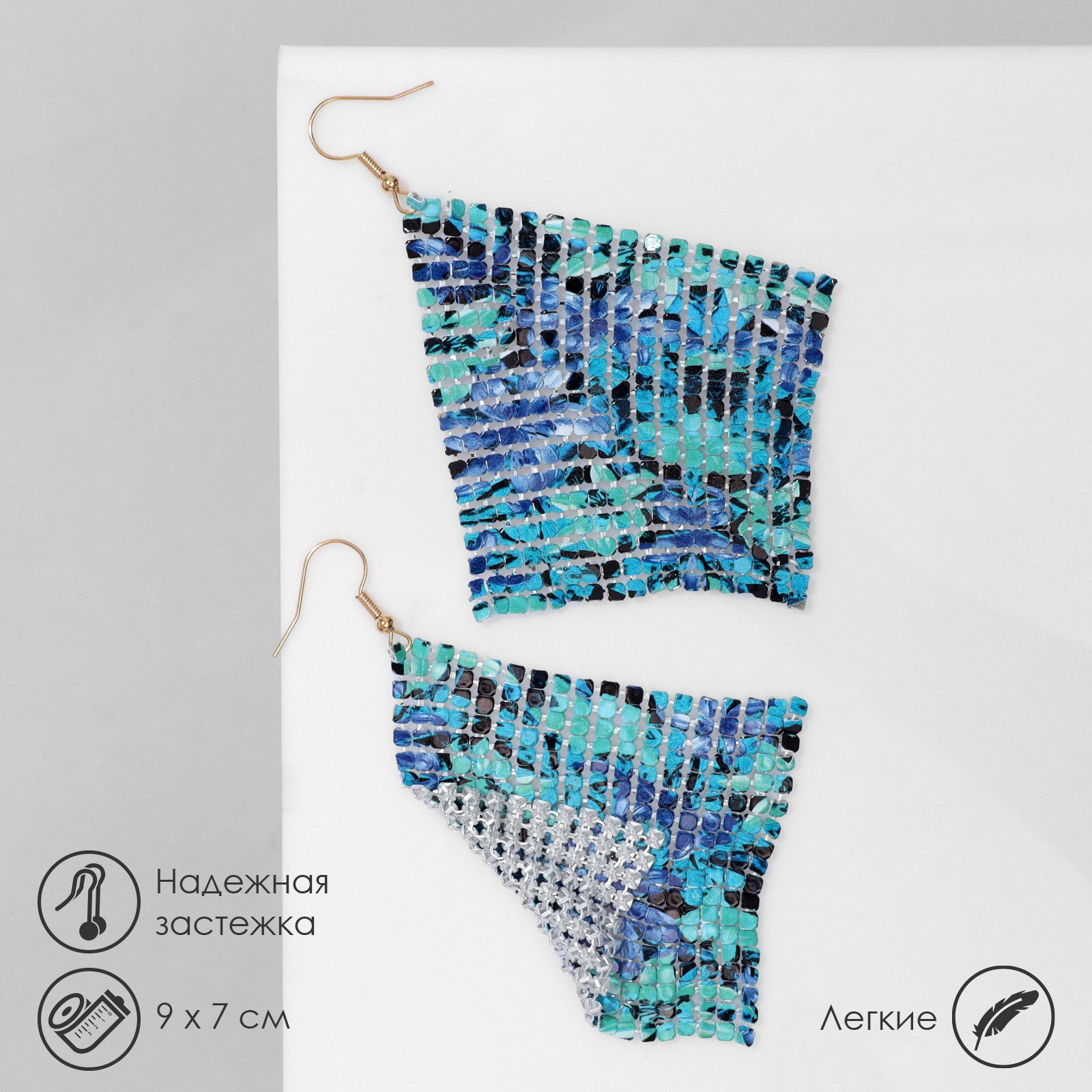 Серьги висячие "Ромб" кольчуга, переливы, цвет сине-зелёный, 9 см, 8x9x1.5 см., QF, Китай