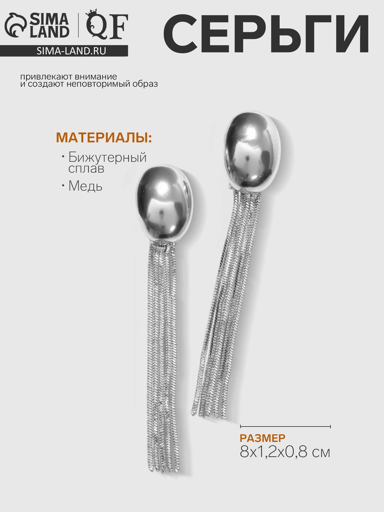 Серьги висячие "Стерео" овал, цвет серебро, 1.2x8x0.8 см., QF, Китай