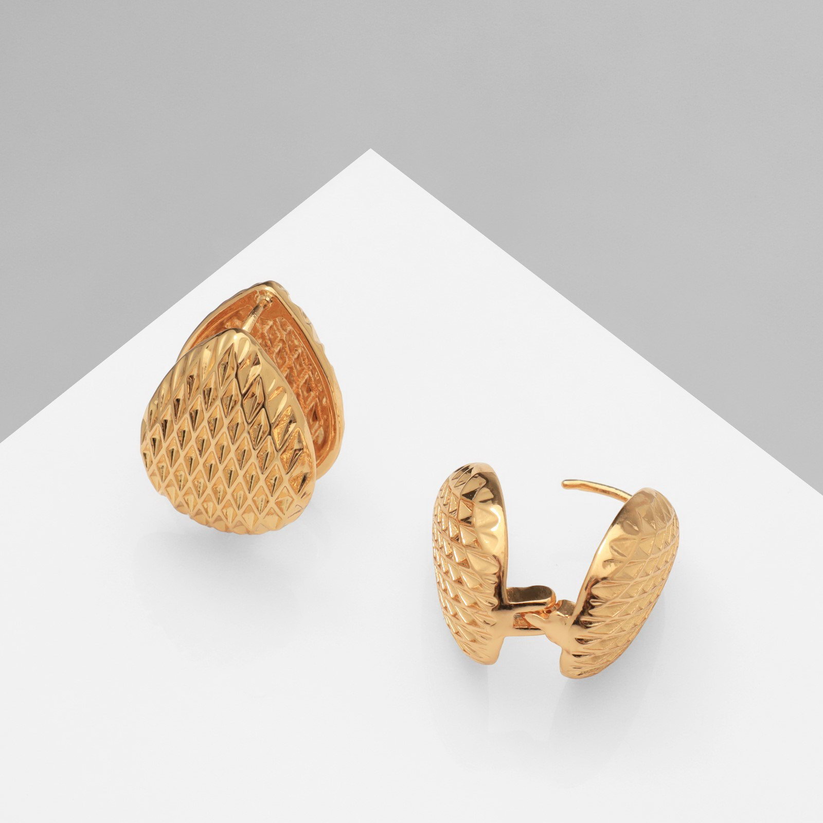 Серьги металл "Аккорд" орнамент, капля, цвет золото, 1.5x2.1x1.5 см., QF, Китай