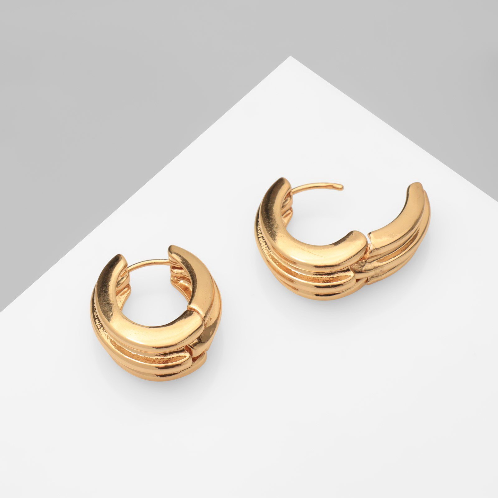 Серьги металл "Аккорд" круг полосы, цвет золото, 2x2.2x1 см., QF, Китай