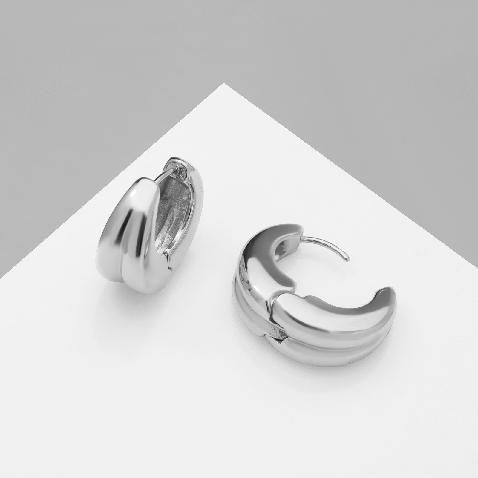 Серьги металл "Аккорд" двойной круг, цвет серебро, 2.2x2.2x1 см., QF, Китай