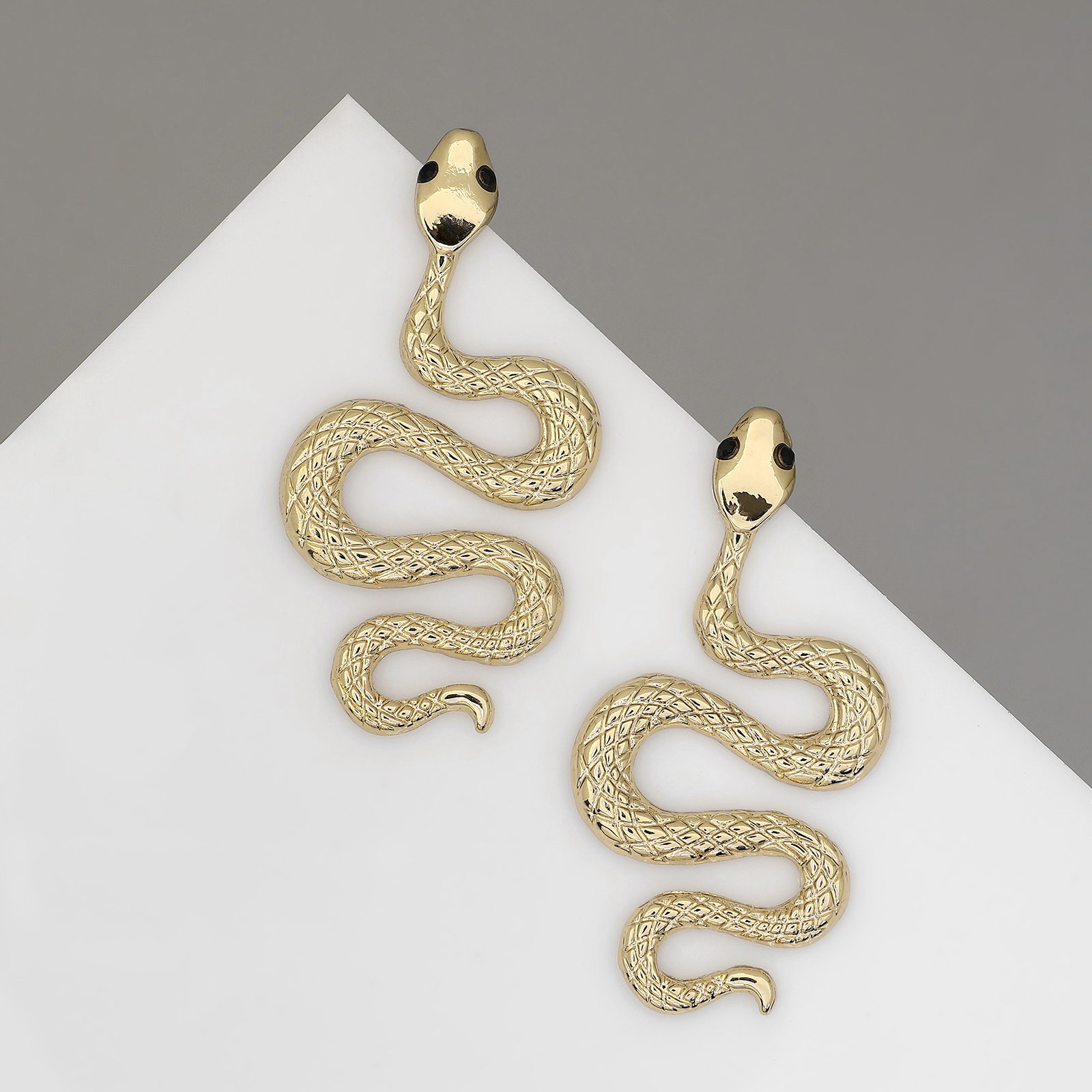 Серьги металл "Змея" пламенное желание мини, цвет белый в золоте, 2.5x4.9x0.4 см., QF, Китай