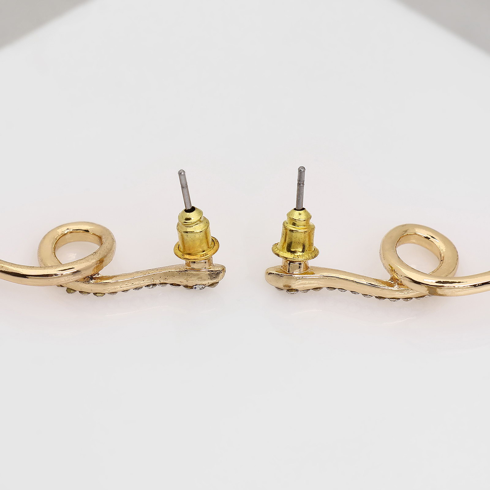 Серьги металл"Змея" миниатюрные мини, цвет белый в золоте, 1x4x0.5 см., Queen fair, Китай
