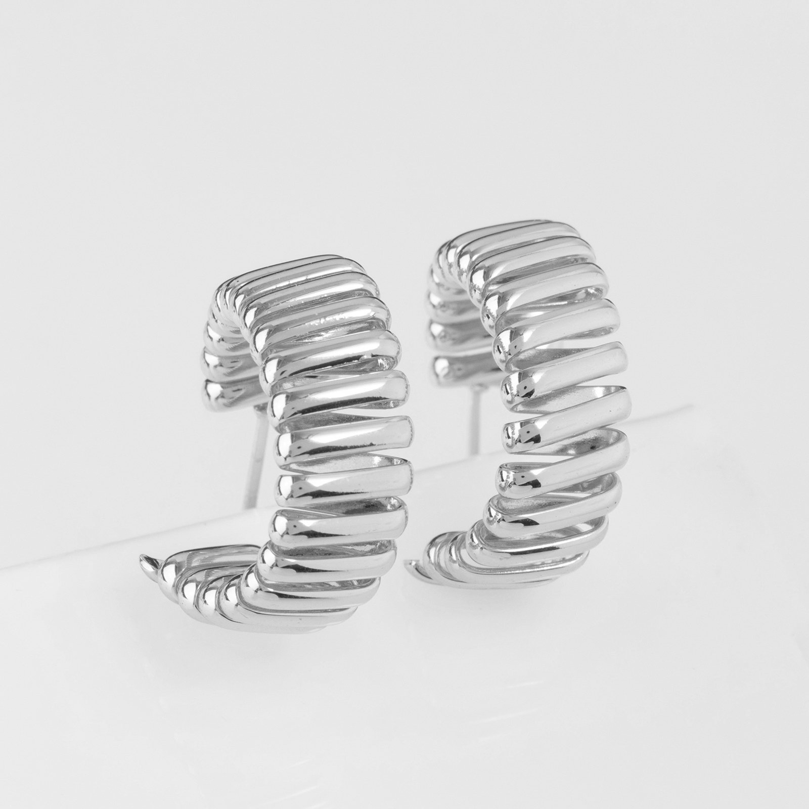 Серьги металл "Геометрия" дорожка акары, цвет серебро, d=3.3 см, 3.3x1x0.5 см., QF, Китай