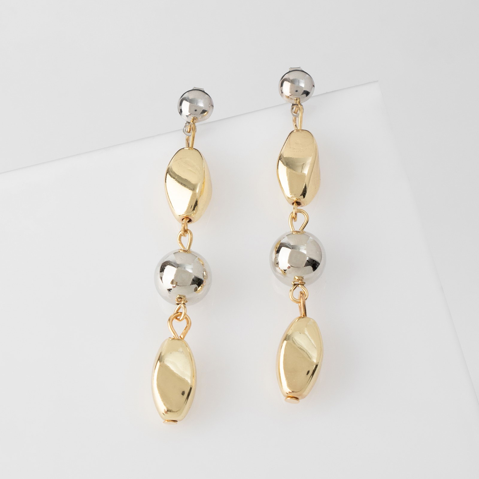 Серьги металл "Стиль" лабео, цвет серебряно-золотой, 6x0.7x0.6 см., QF, Китай