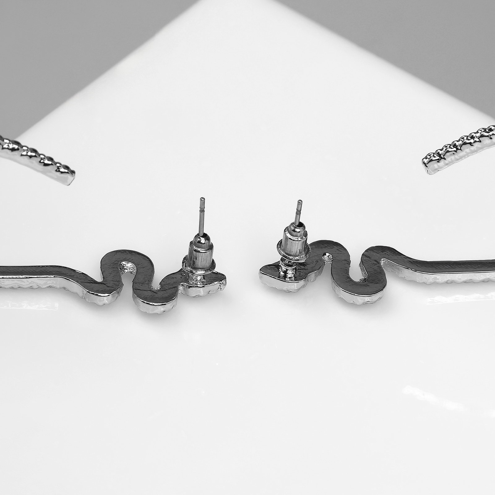 Размер упаковки: 7 x 1.5 x 10.5 см. Цвет фурнитуры: Серебряный Вставка/Подвеска: Без вставок Цвет: Серебристый Набор: Нет Длина, см: 5.3 Вид застёжки: Застёжка пусет (гвоздик) Для кого: Для женщины Тематика: Рептилия tnved: 7117190000 | ||