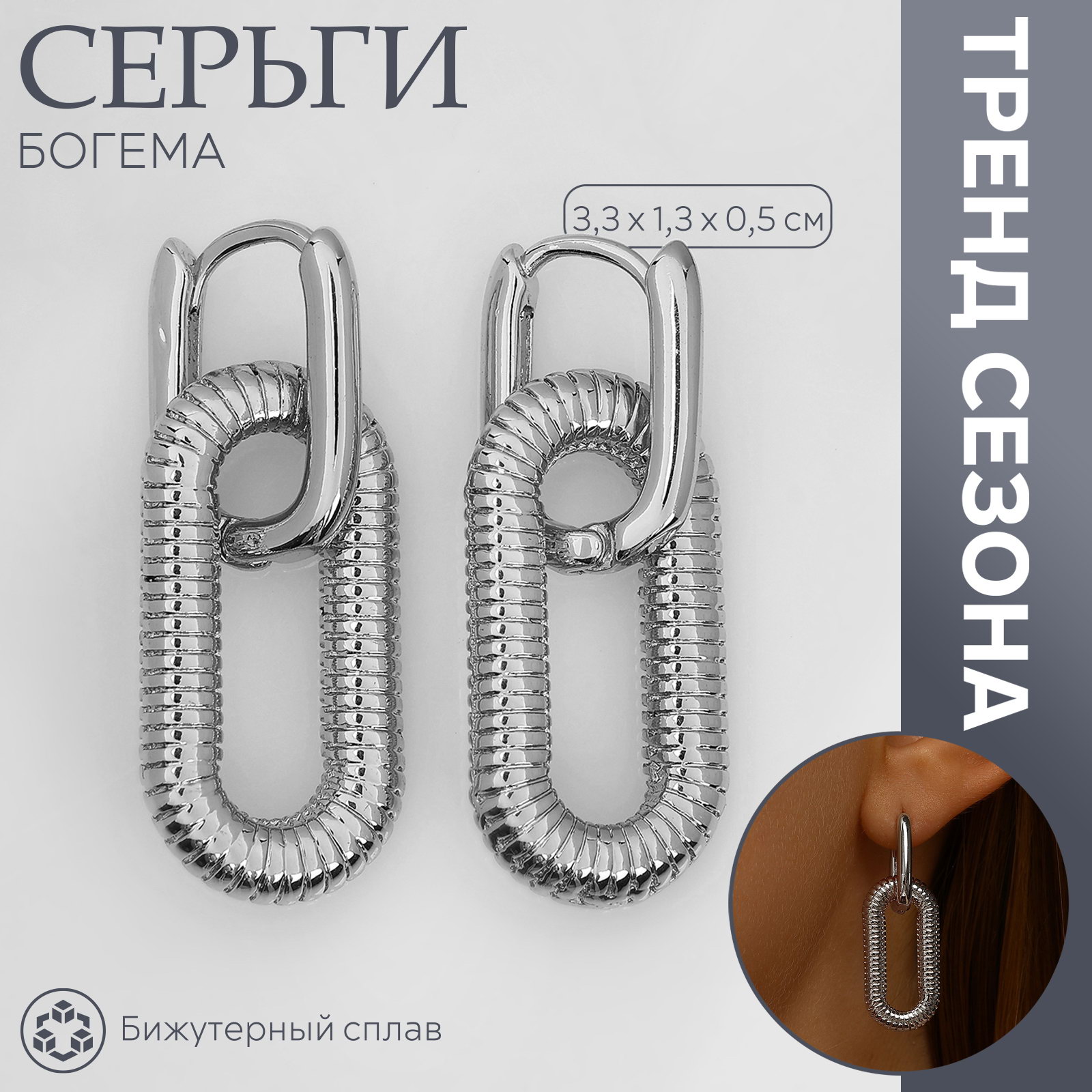 Серьги металл "Богема" измерение, цвет серебро, 1.3x3.3x0.5 см., QF, Китай