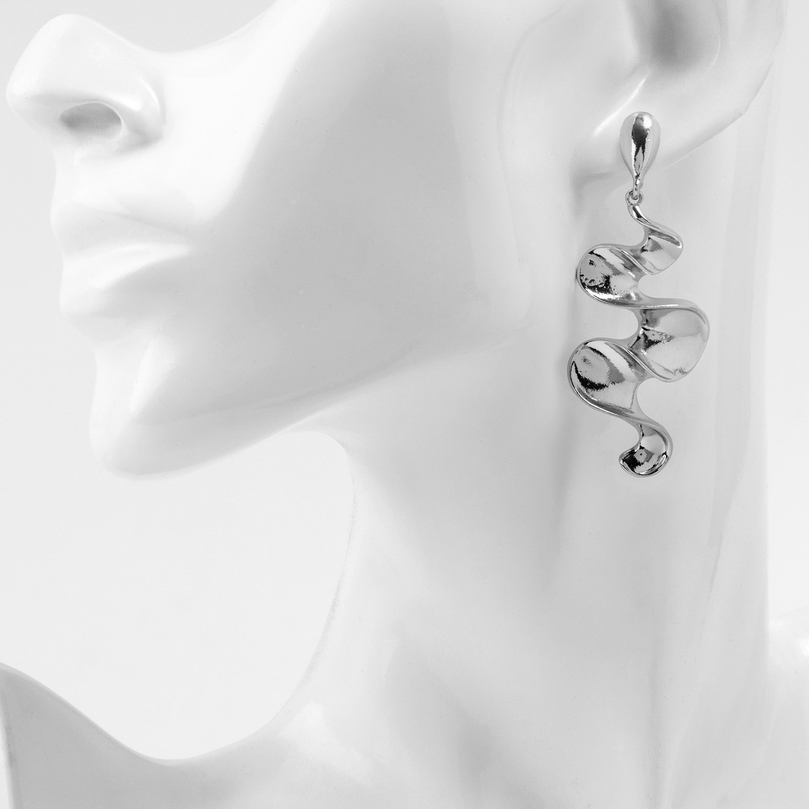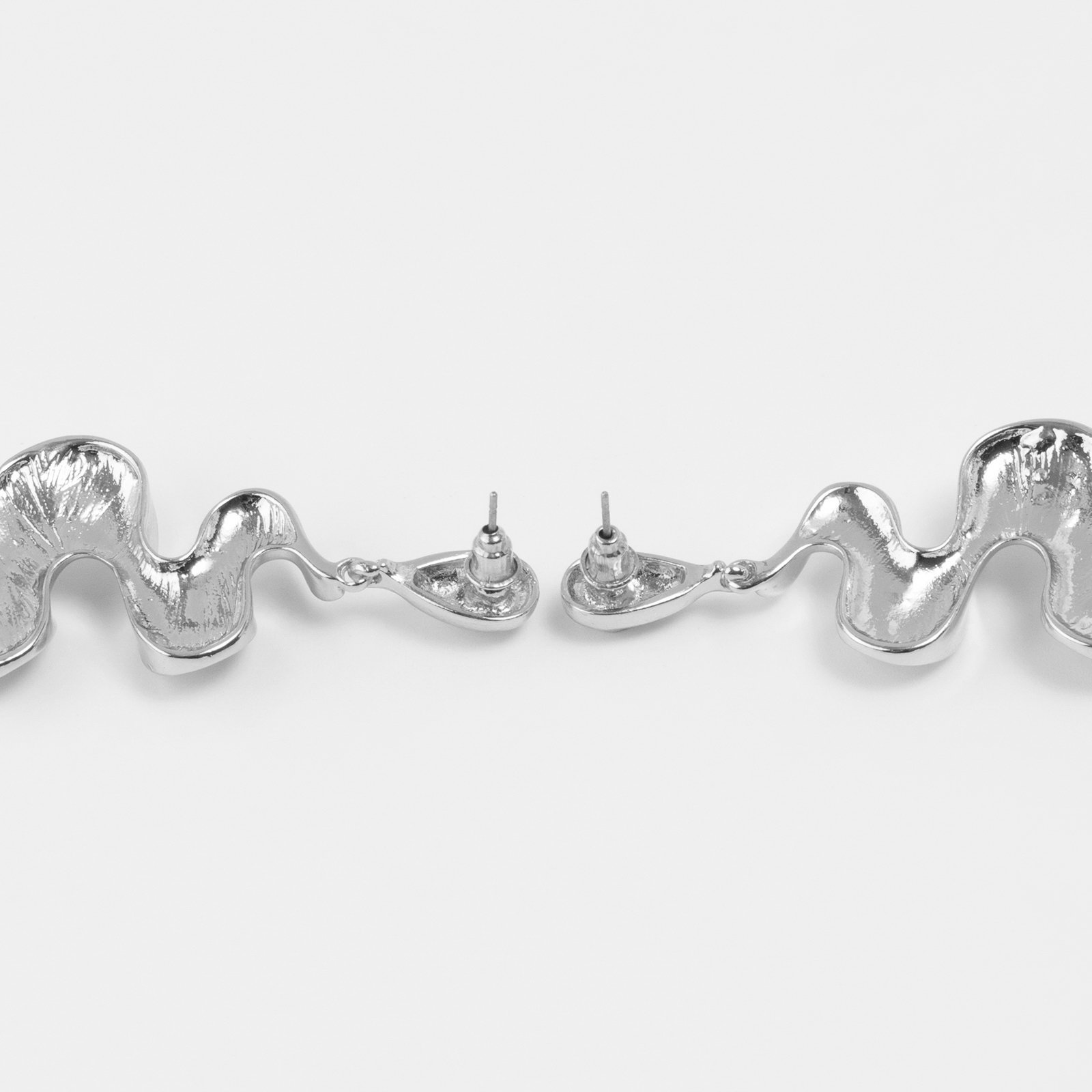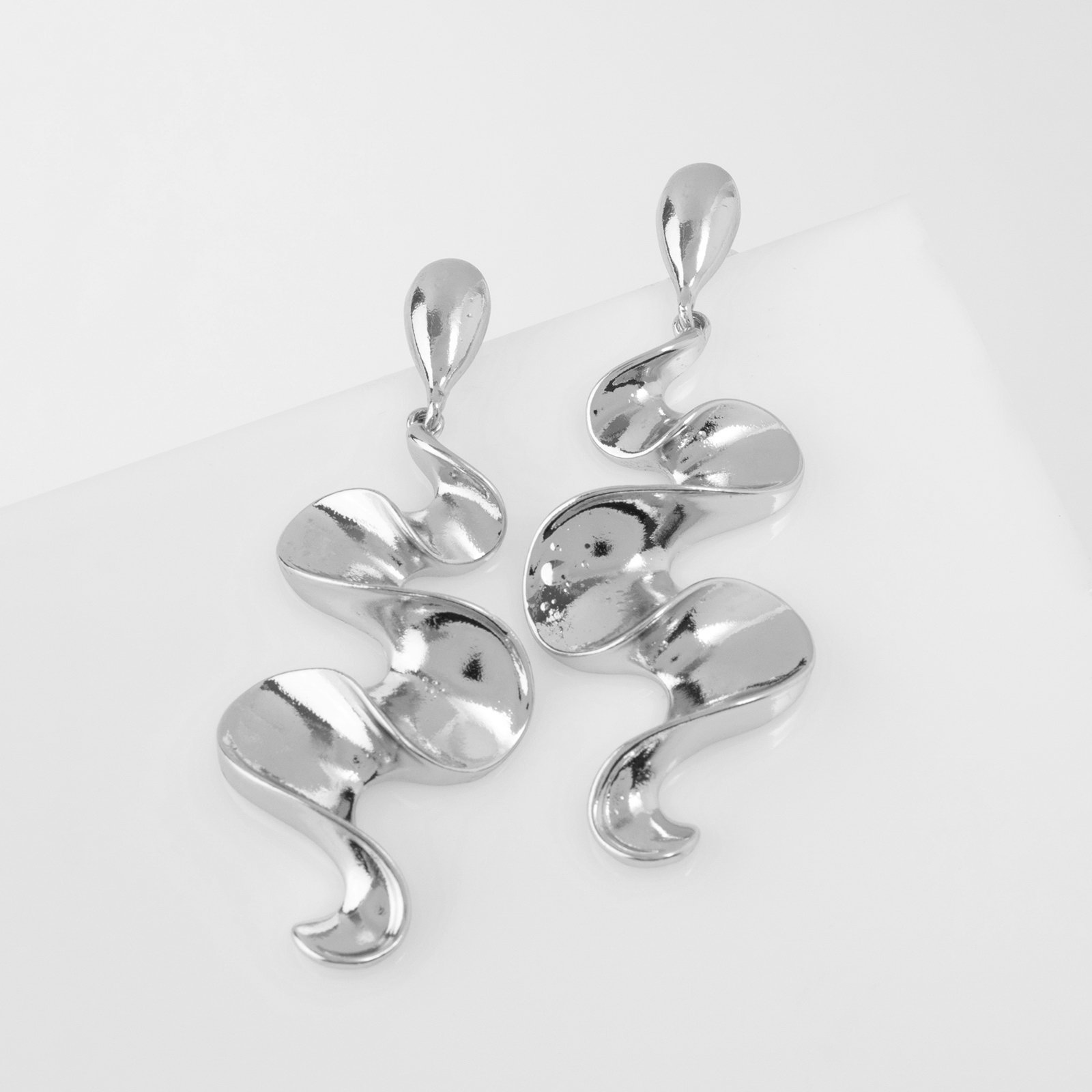 Серьги металл "Блеск" волна мини, цвет серебро, 2.7x6.7x0.5 см., Queen fair, Китай