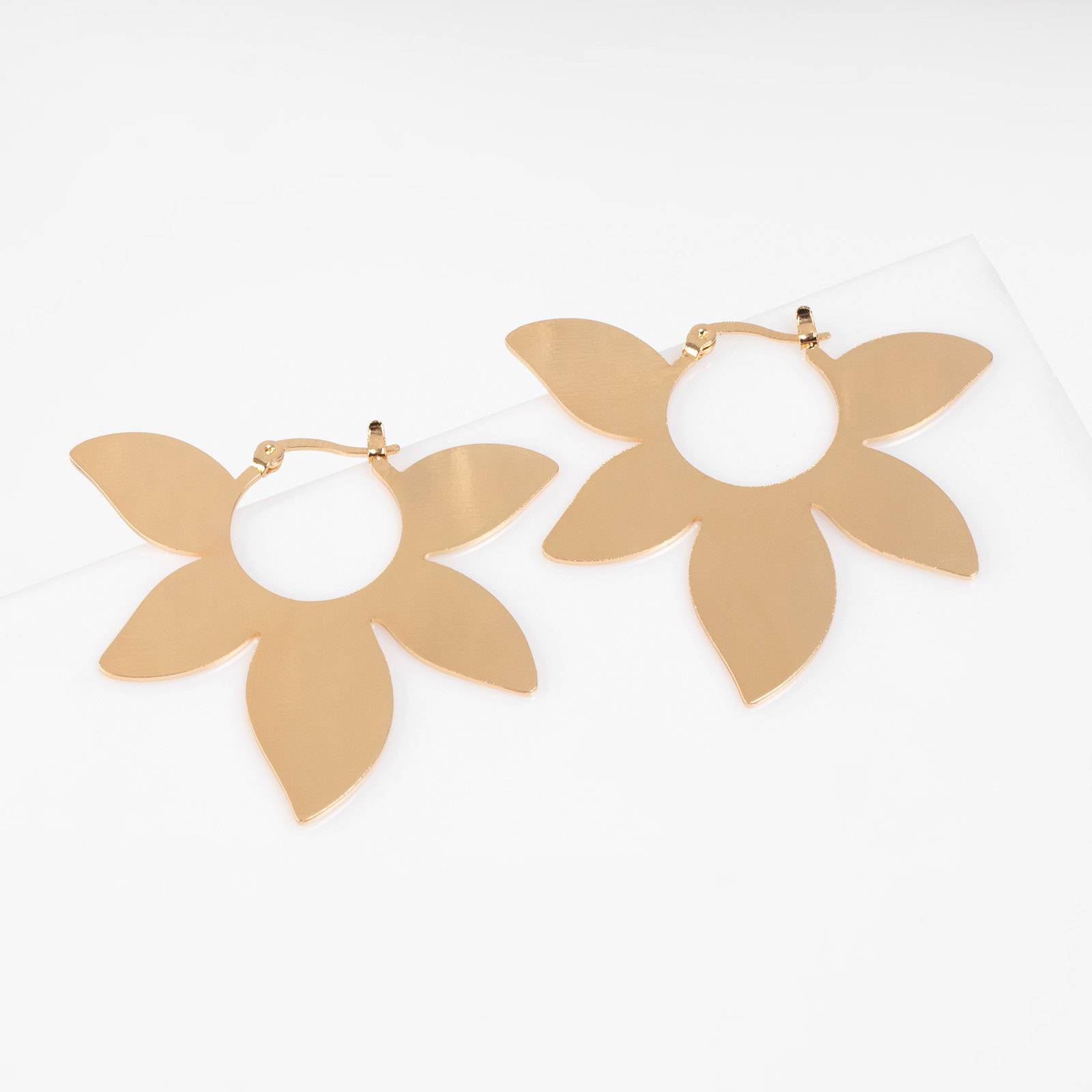 Серьги металл "Блеск" пятилистник мах, цвет золото, 5.2x4.3x0.2 см., QF, Китай