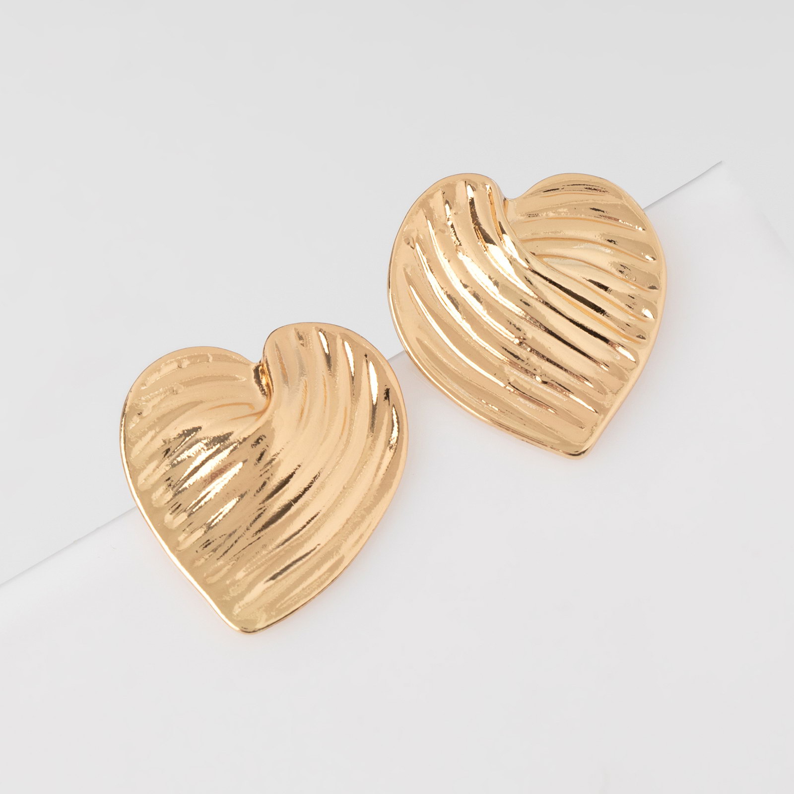 Серьги металл "Сердца" лист, цвет золото, 3x2.6x0.3 см., QF, Китай
