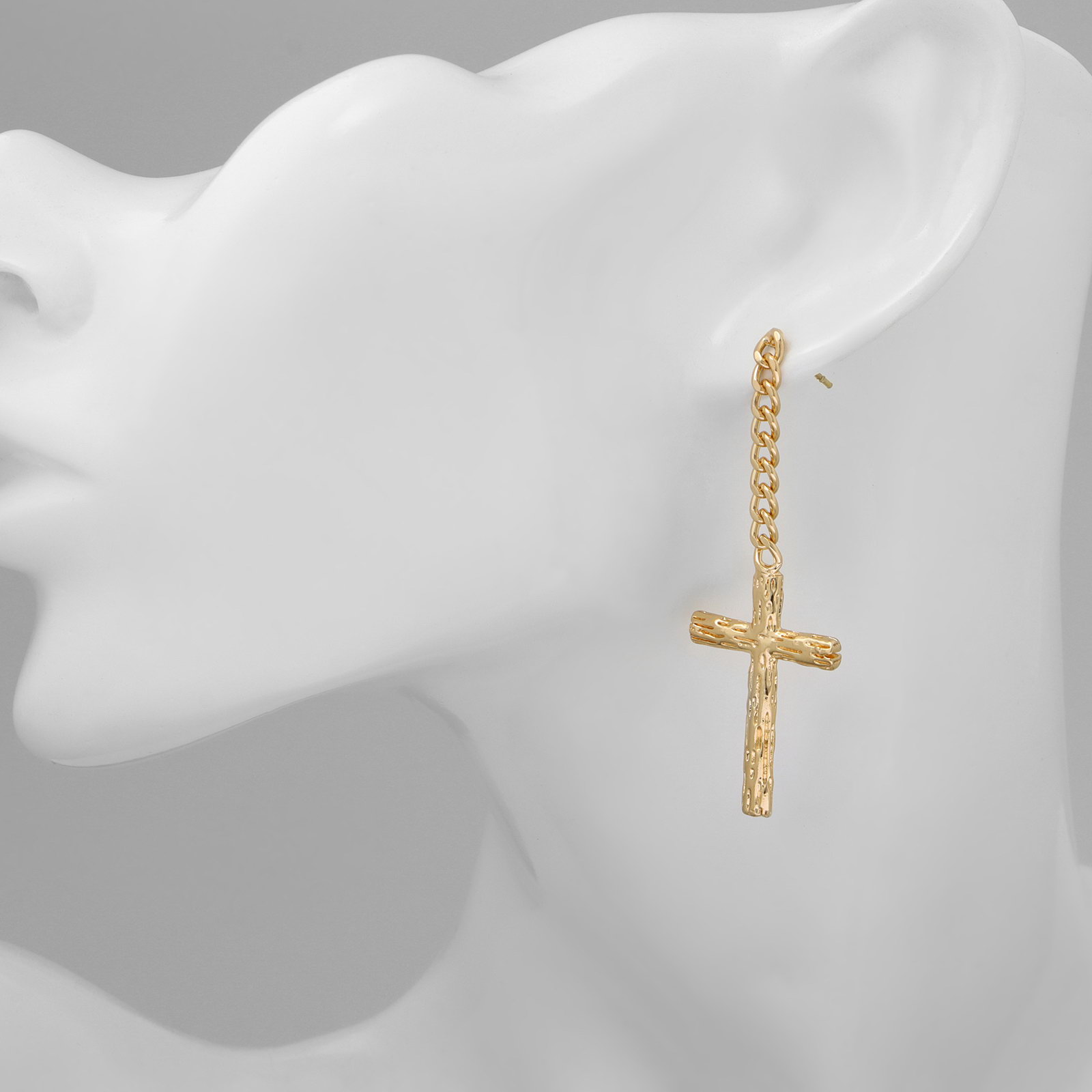 Серьги металл "Крест и цепочка" плетение, цвет золото, 2x5.3x0.3 см., QF, Китай