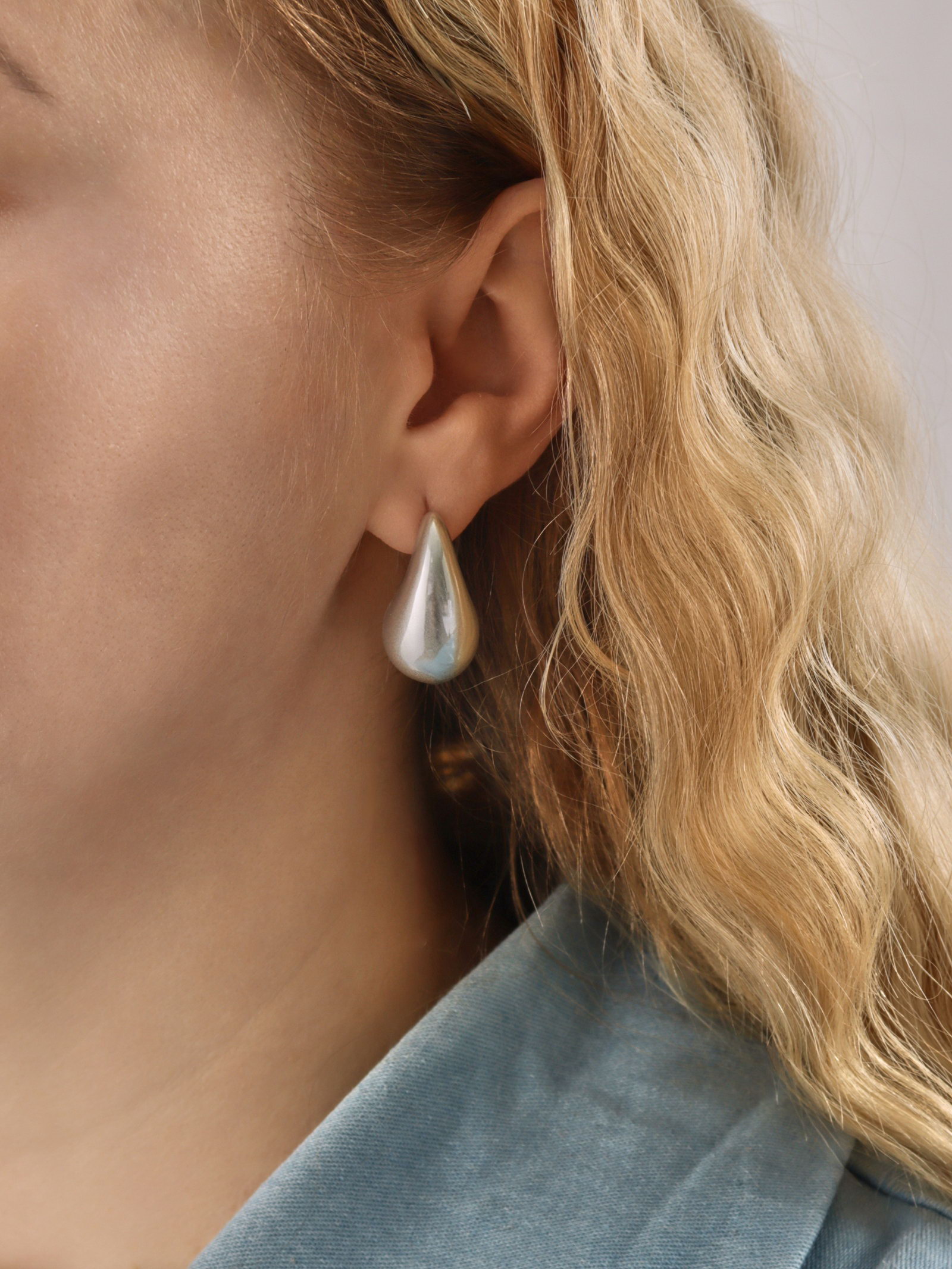 Серьги металл "Капля" микро блёстки, цвет серебро, 1.4x2.5x1.5 см., QF, Китай