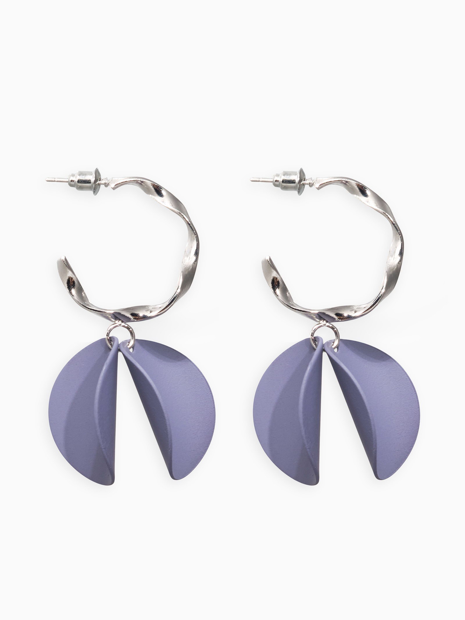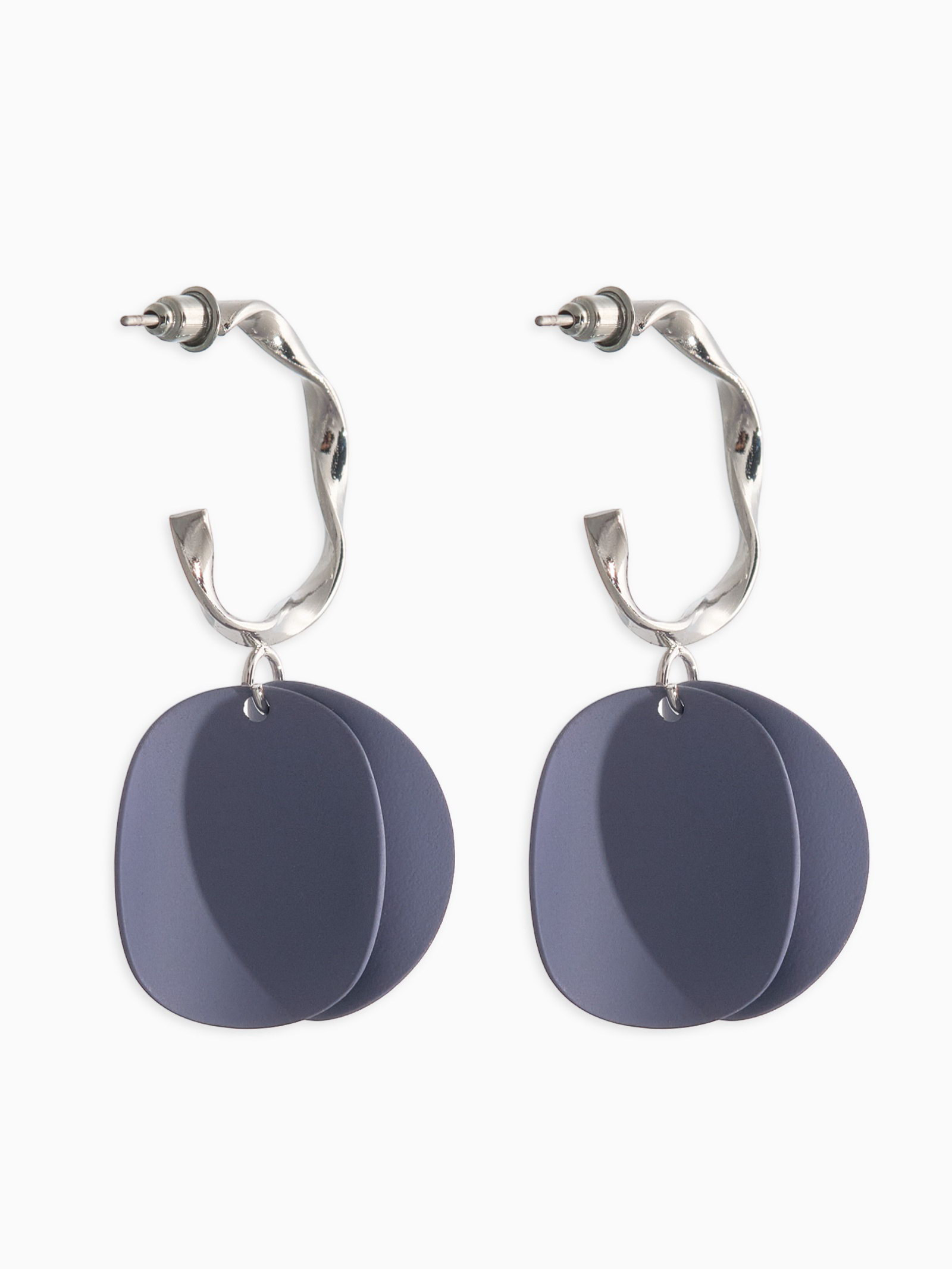 Серьги "Лепесточки на кольце", серые в серебре, 2.5x5x2 см., QF, Китай