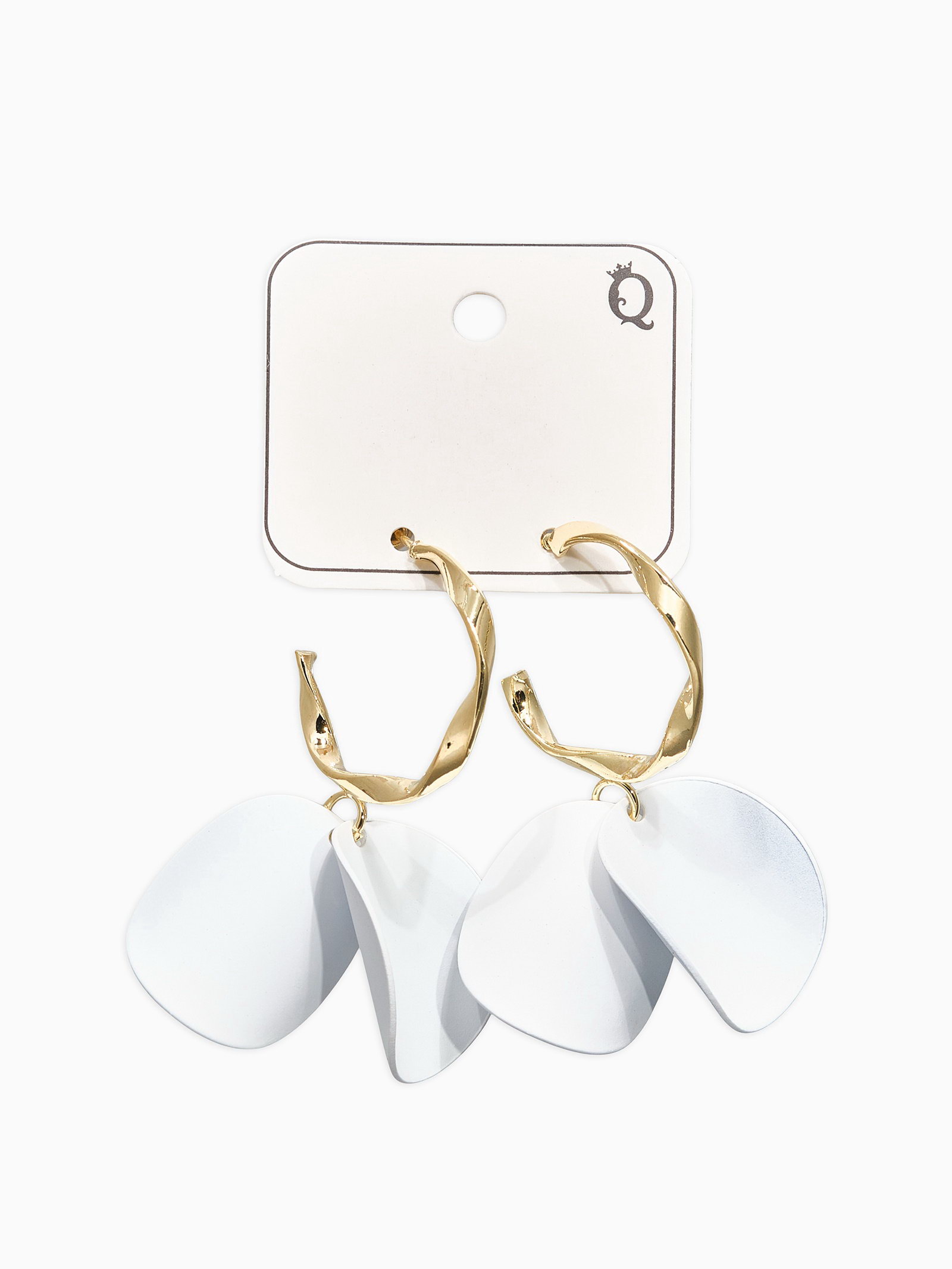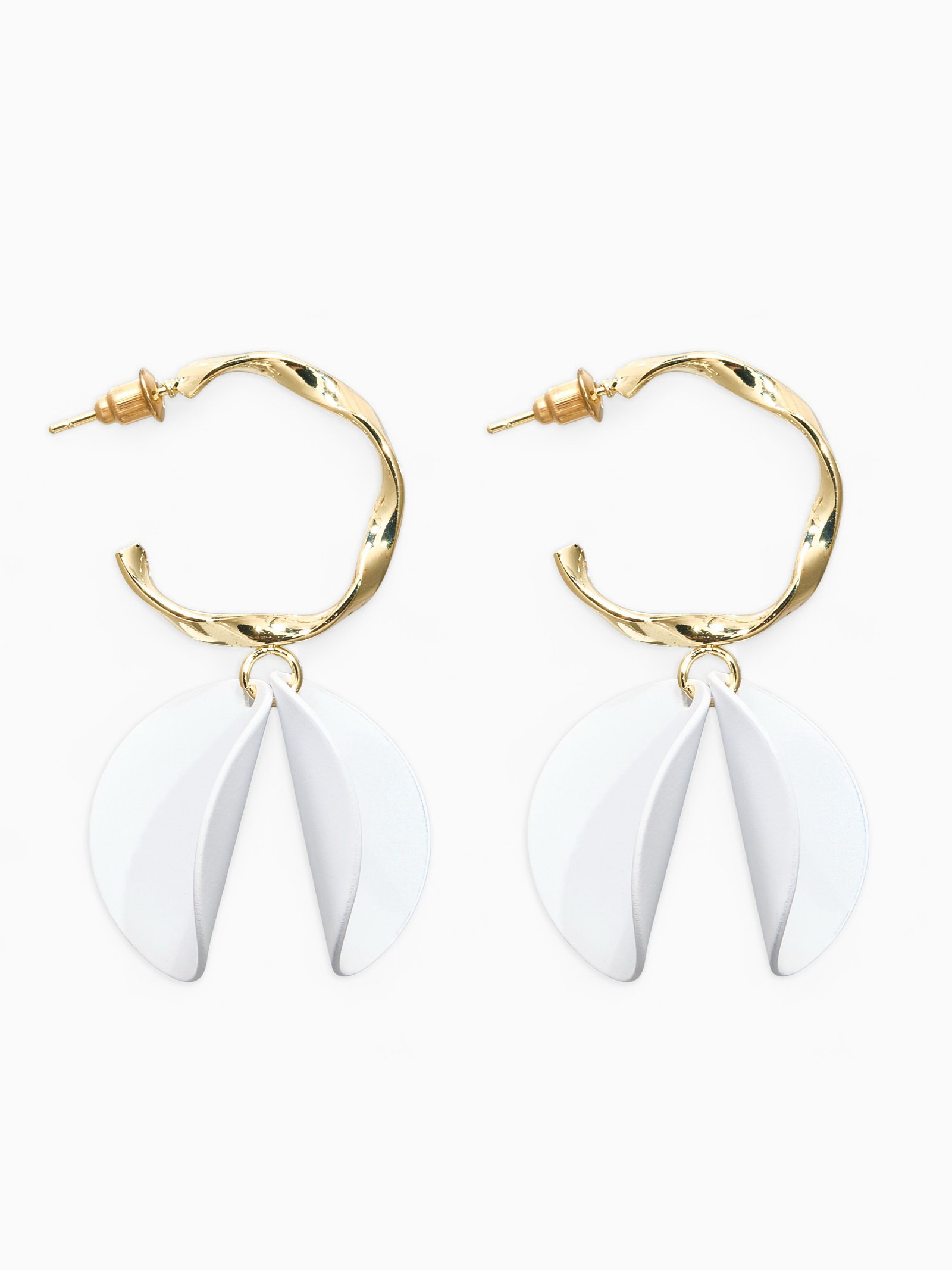 Серьги "Лепесточки на кольце", белые в золоте, 2.5x5x2 см., QF, Китай