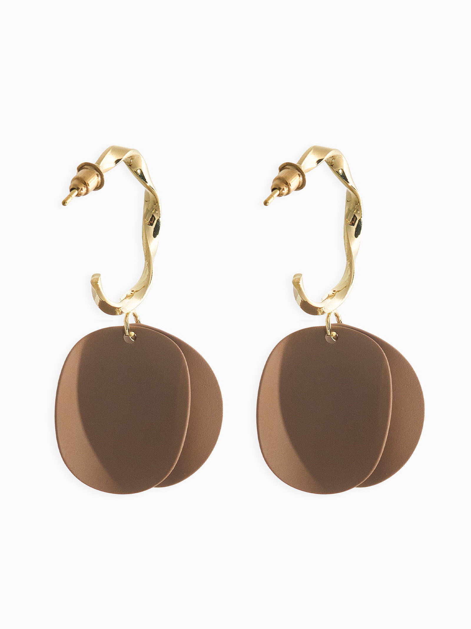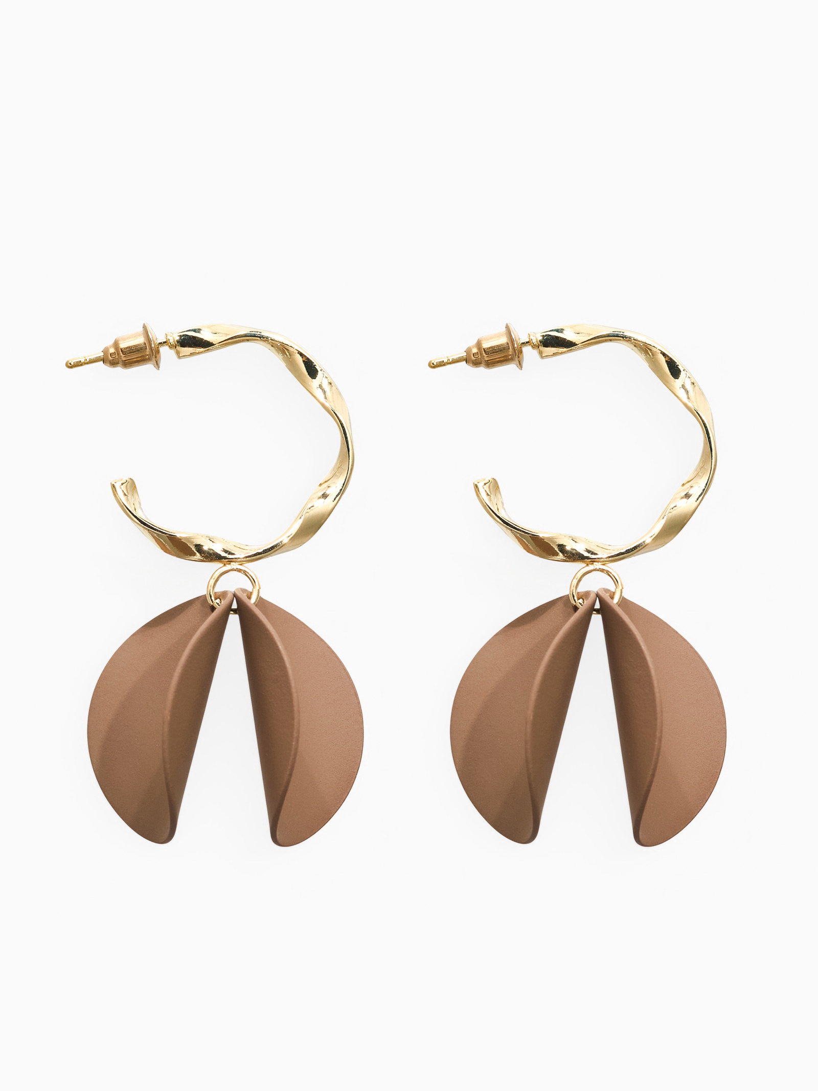 Серьги "Лепесточки на кольце", коричневые в золоте, 2.5x5x2 см., QF, Китай