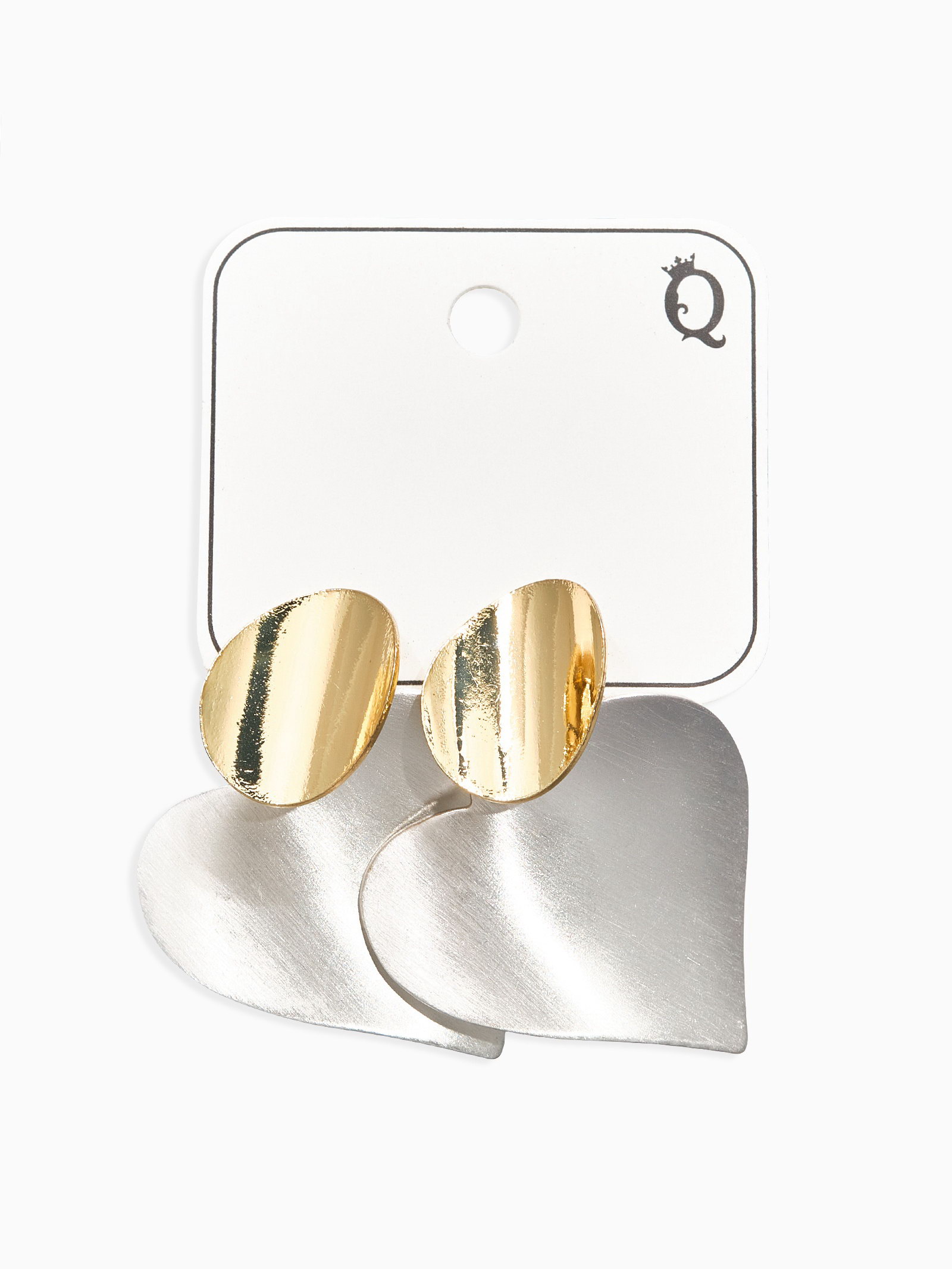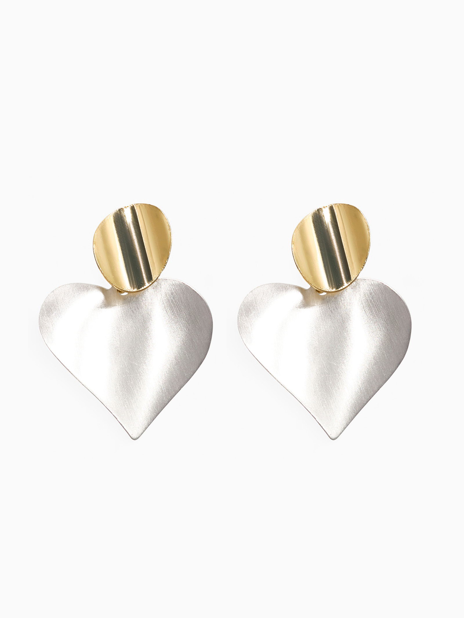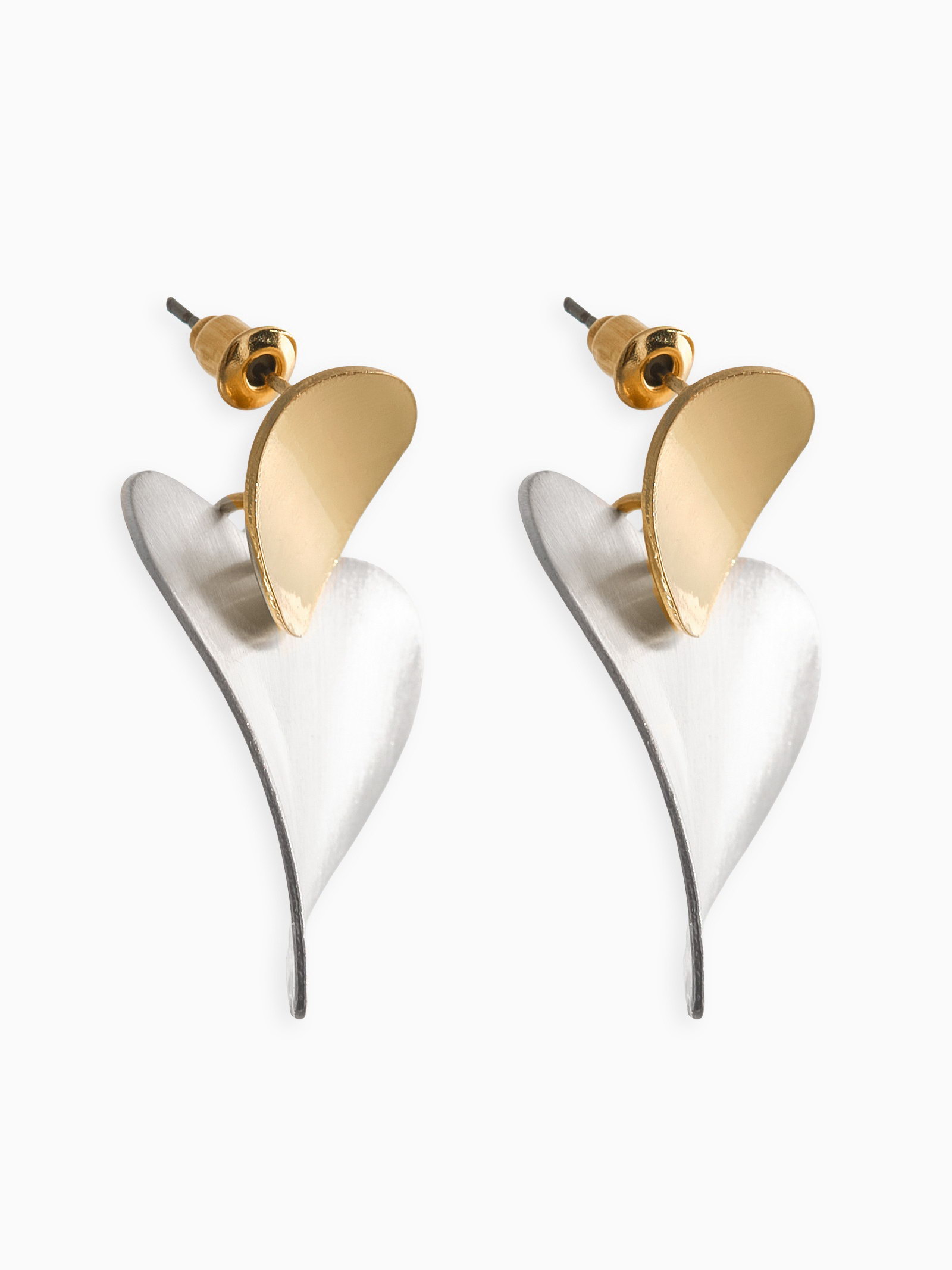 Серьги "Сердечки". матовое серебро с золотом, 3x4x0.4 см., QF, Китай