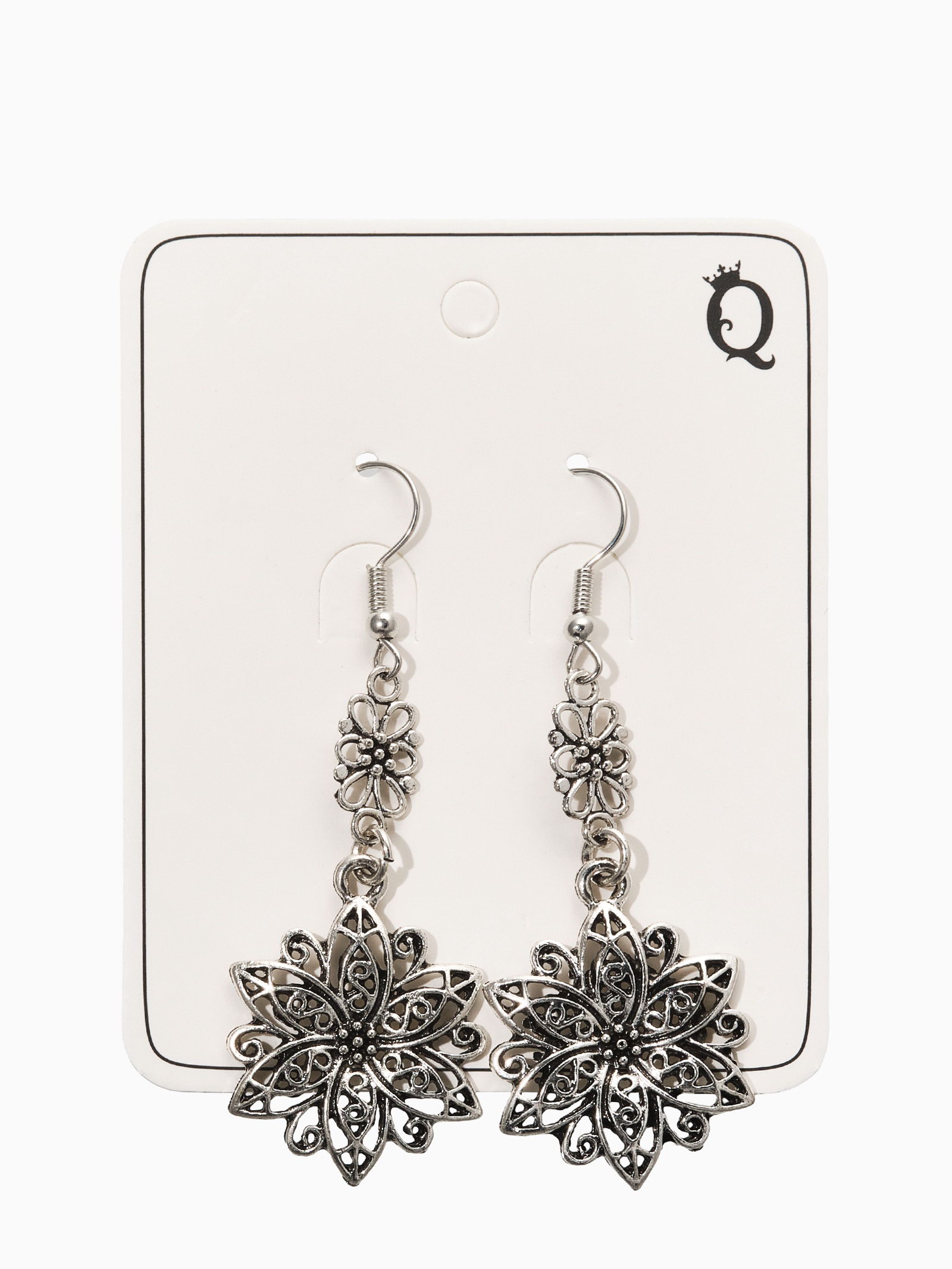 Серьги метал "Аутентичный цветок", цвет чернёное серебро, 2x6x0.3 см., QF, Китай