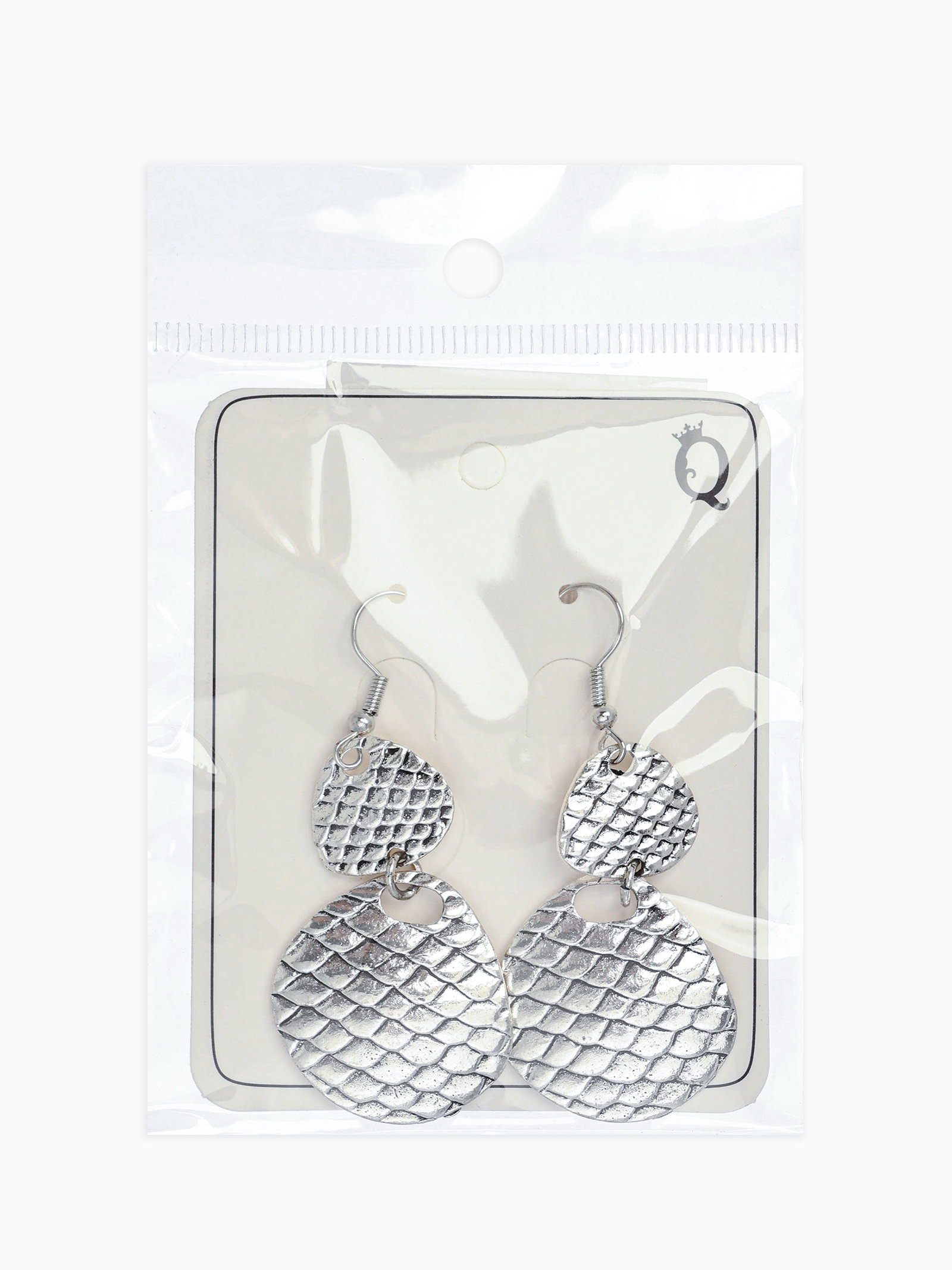 Серьги метал "Чешуя", цвет чернёное серебро, 2.5x5.5x0.3 см., QF, Китай