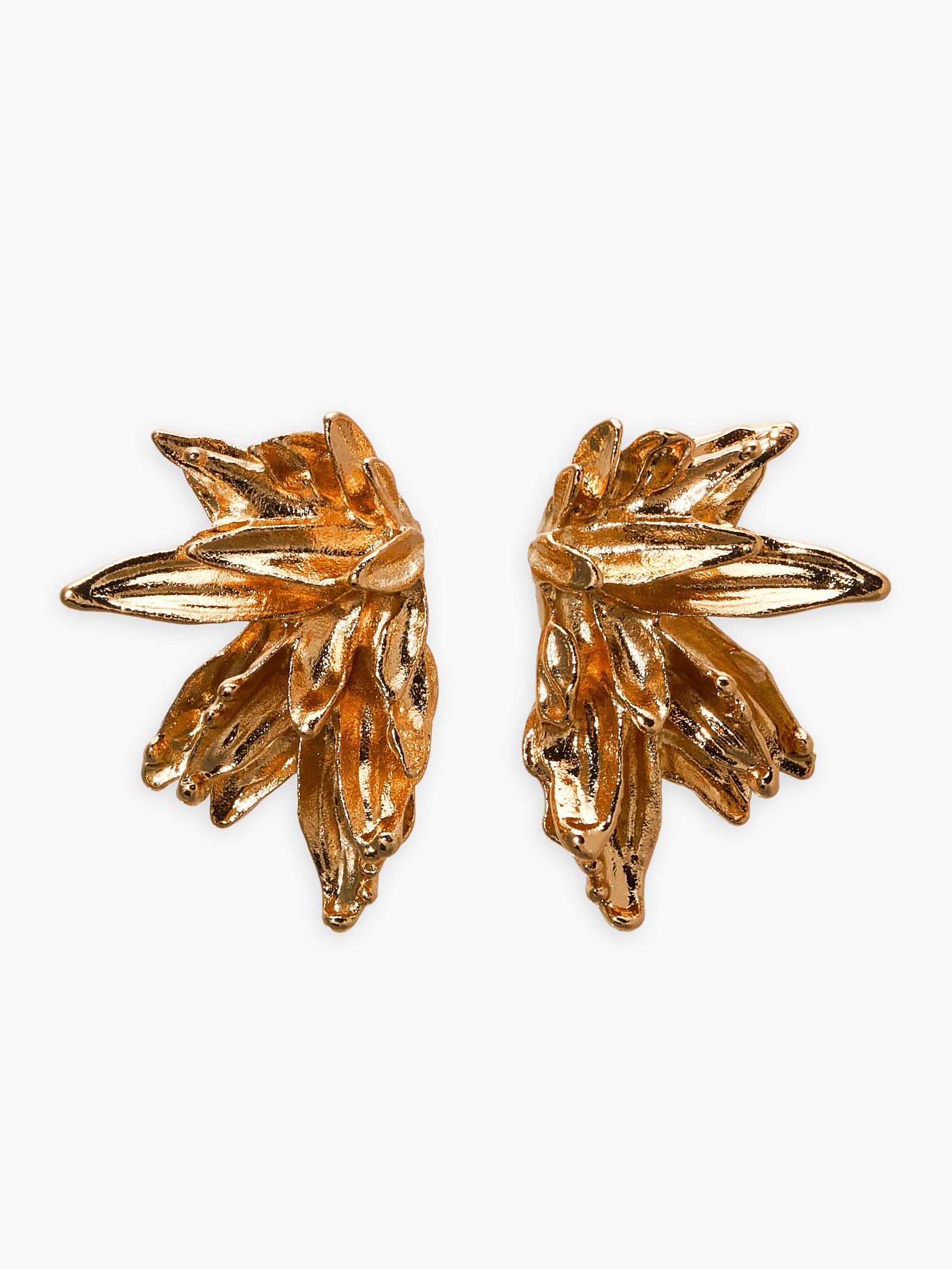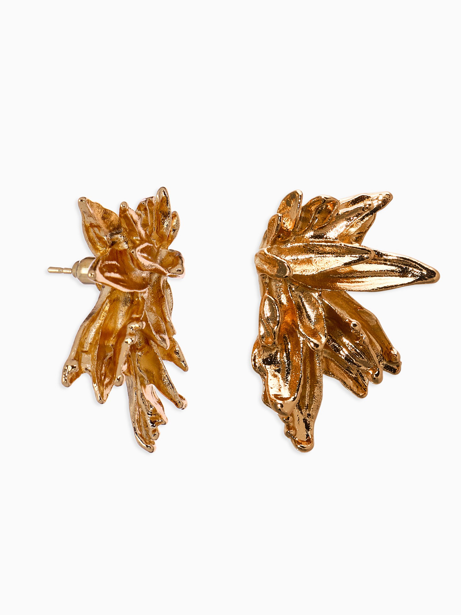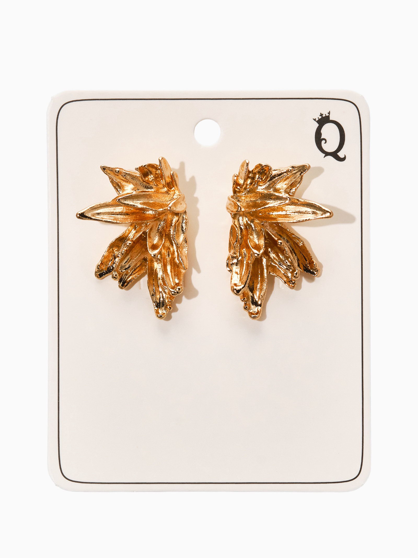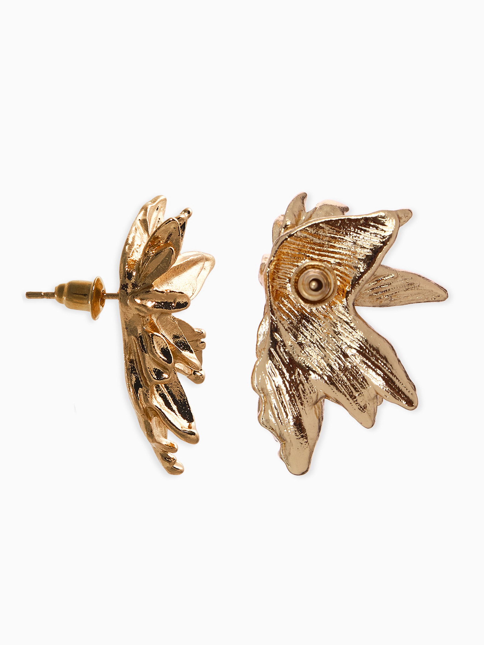 Серьги металл "Цветы половинки", цвет золото, 2.1x3x1 см., QF, Китай