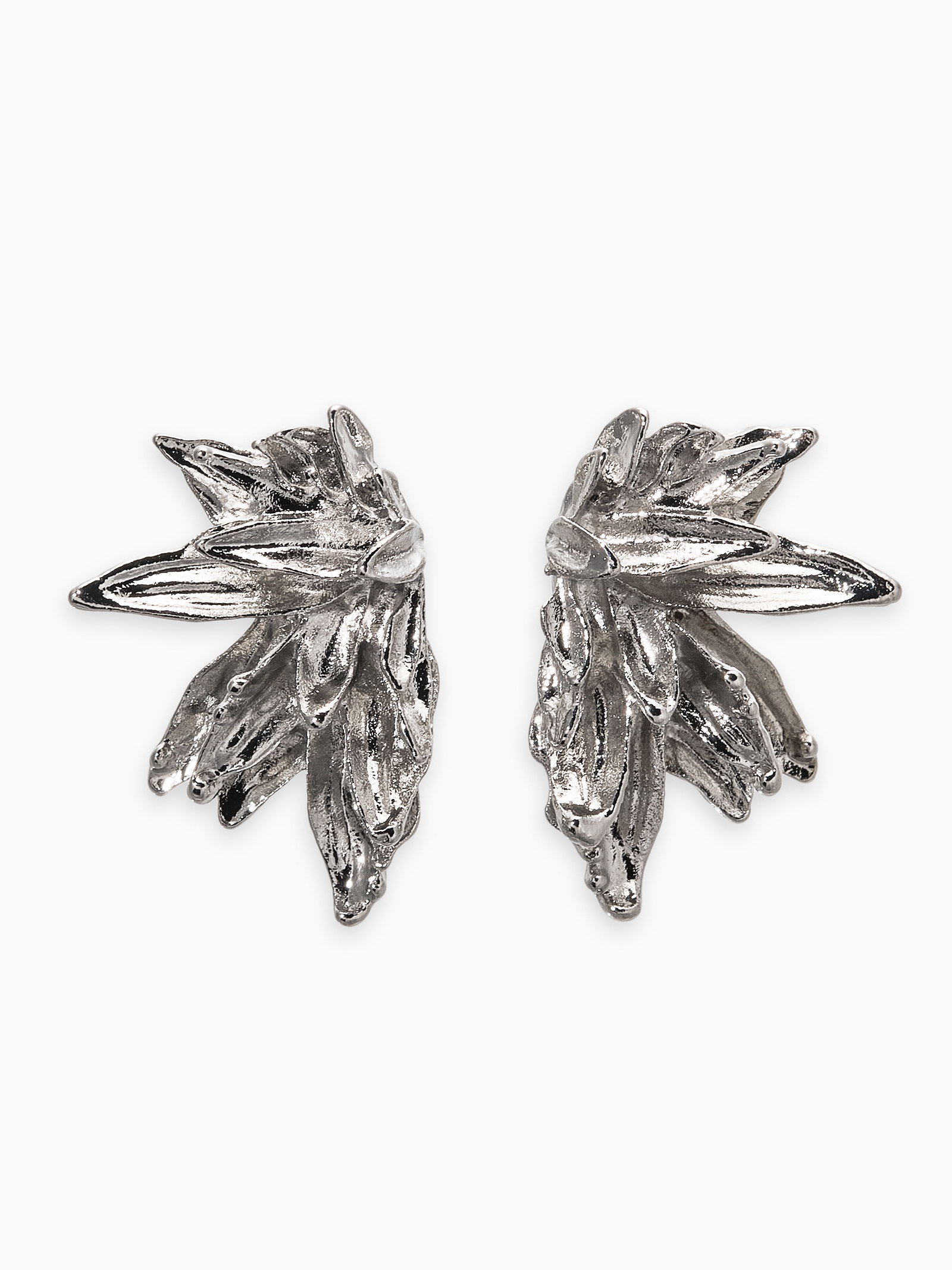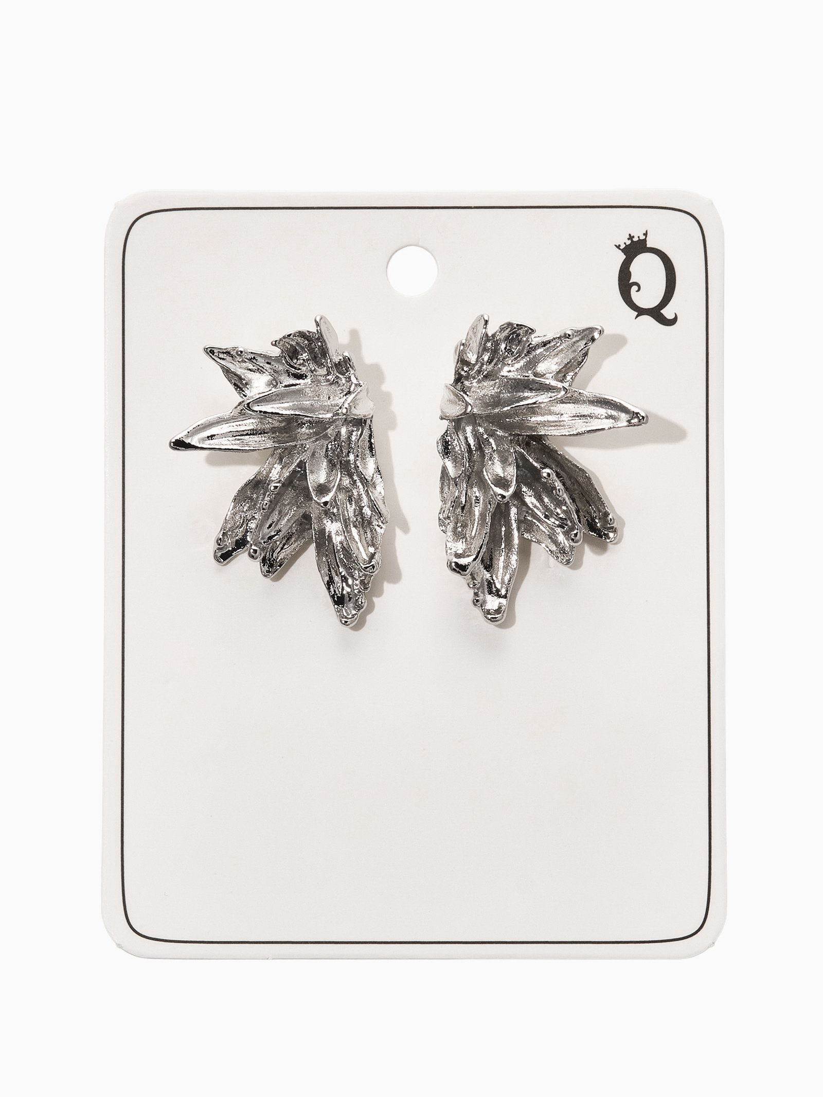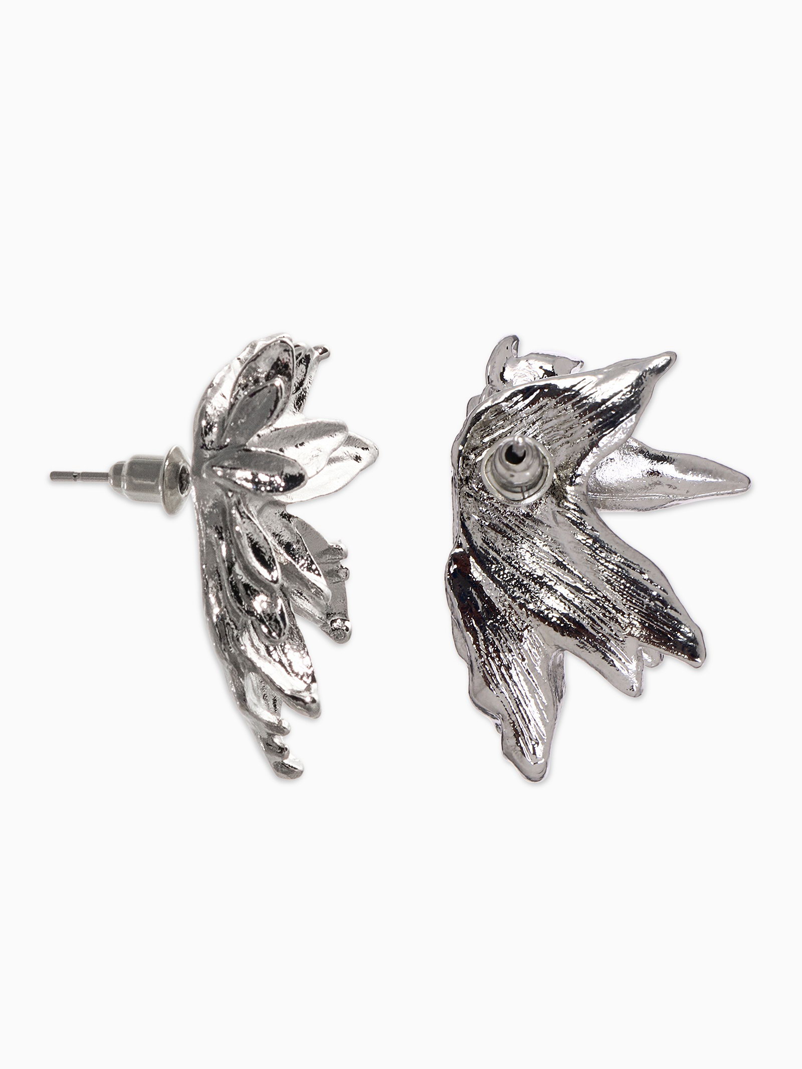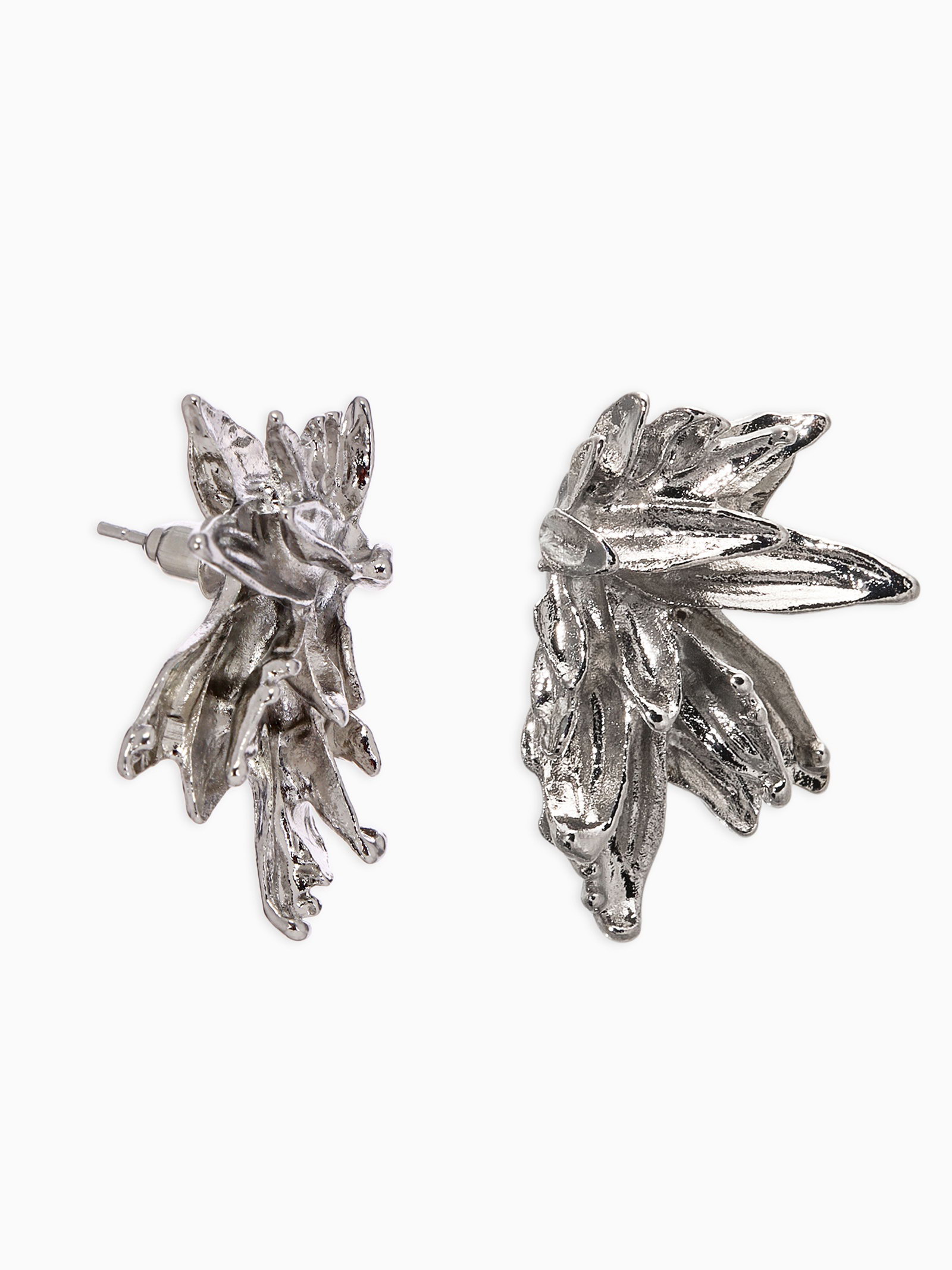 Серьги металл "Цветы половинки", цвет серебро, 2.1x3x1 см., QF, Китай