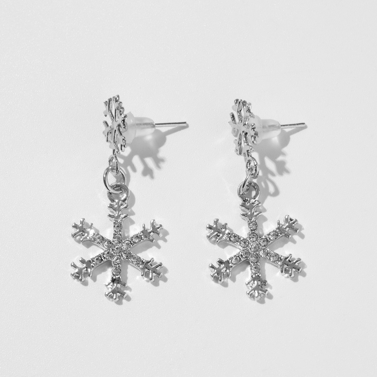 Серьги висячие "Новогодние" снежинки со стразами, цвет белый в серебре, 1.3x2.2x1.5 см., QF, Китай
