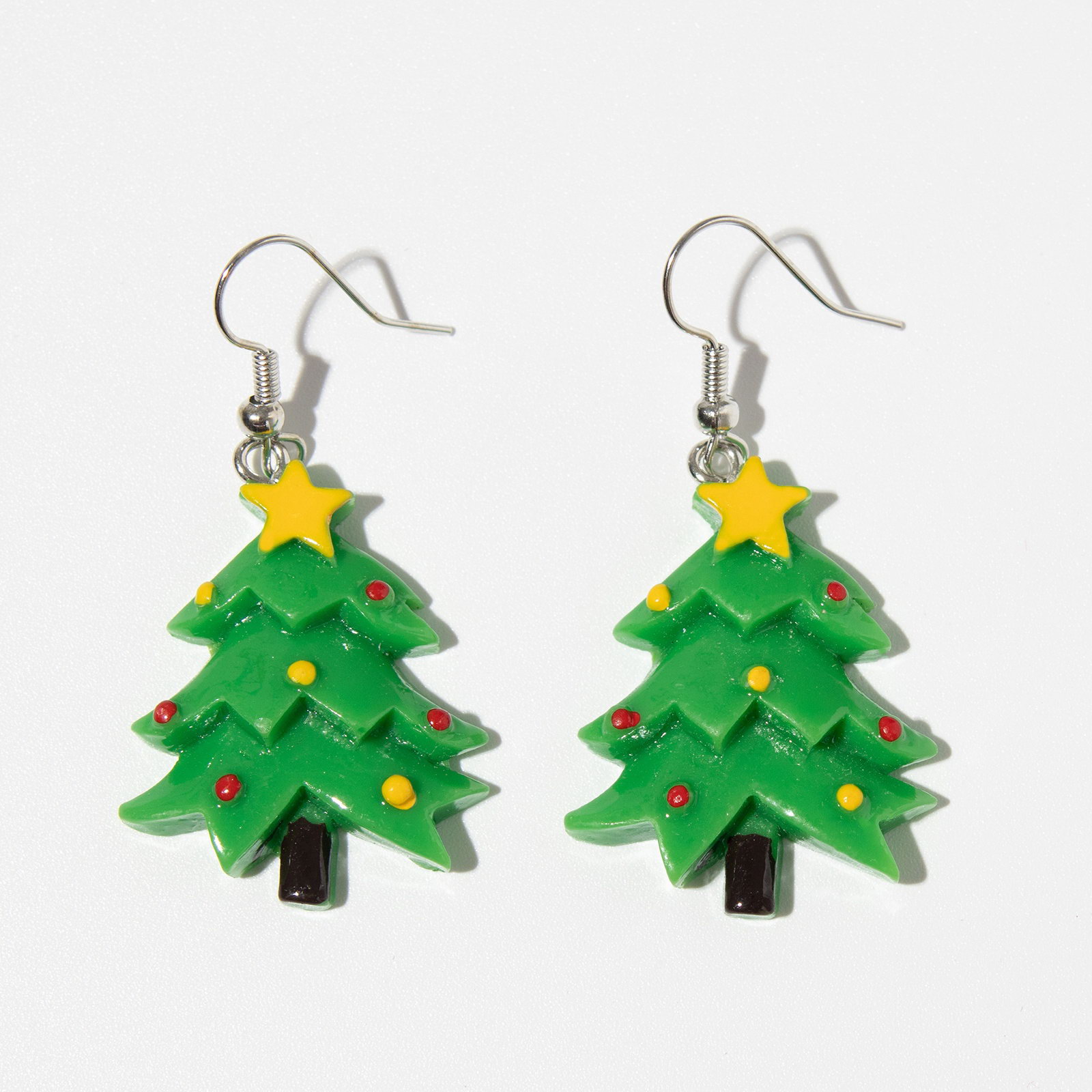 Серьги висячие "Новогодние" ёлочка со звездой, цвет жёлто-зелёный в серебре, 2.5x5x1 см., QF, Китай