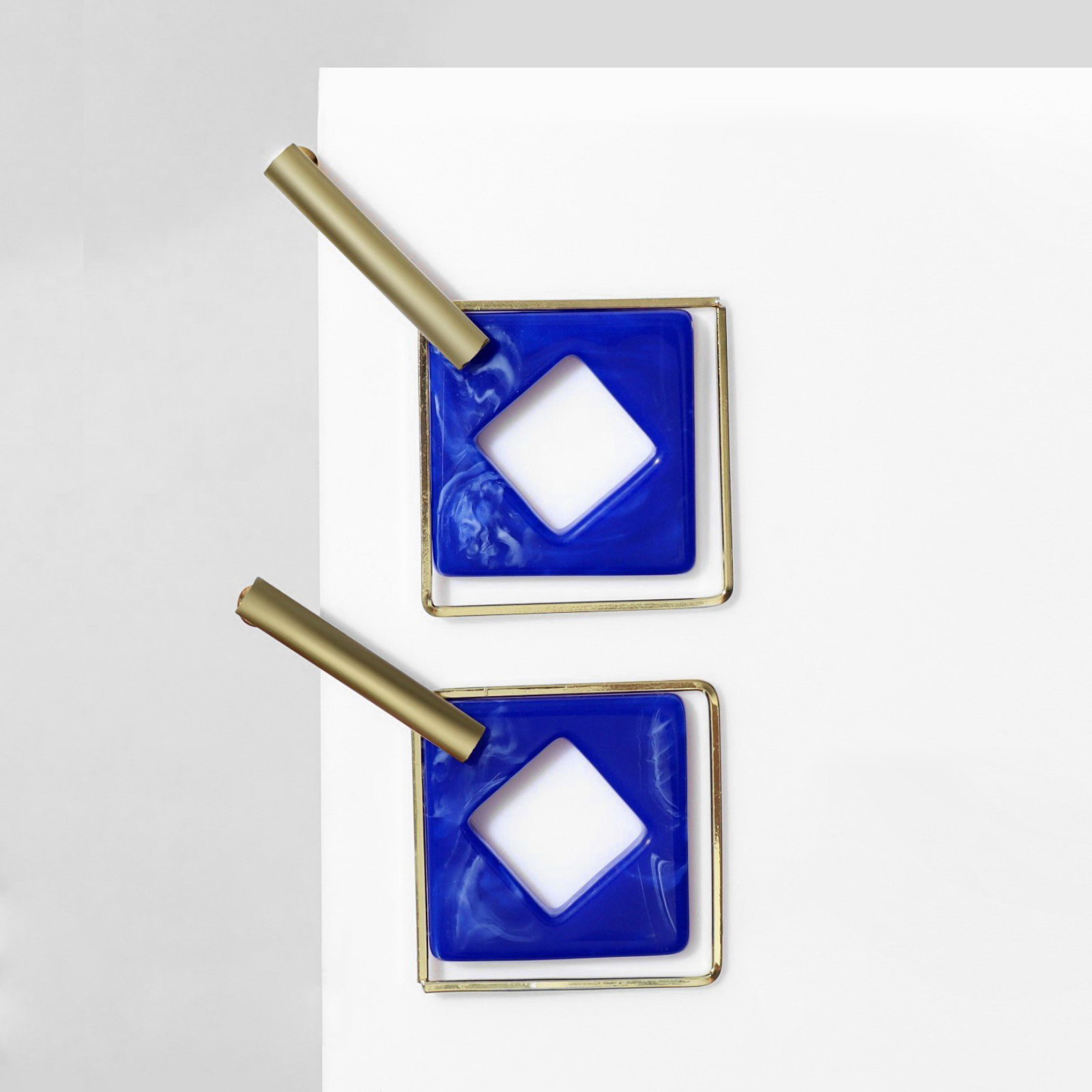 Серьги ассорти "Иллюзия", цвет синий в золоте, 4.7x8x1 см., QF, Китай