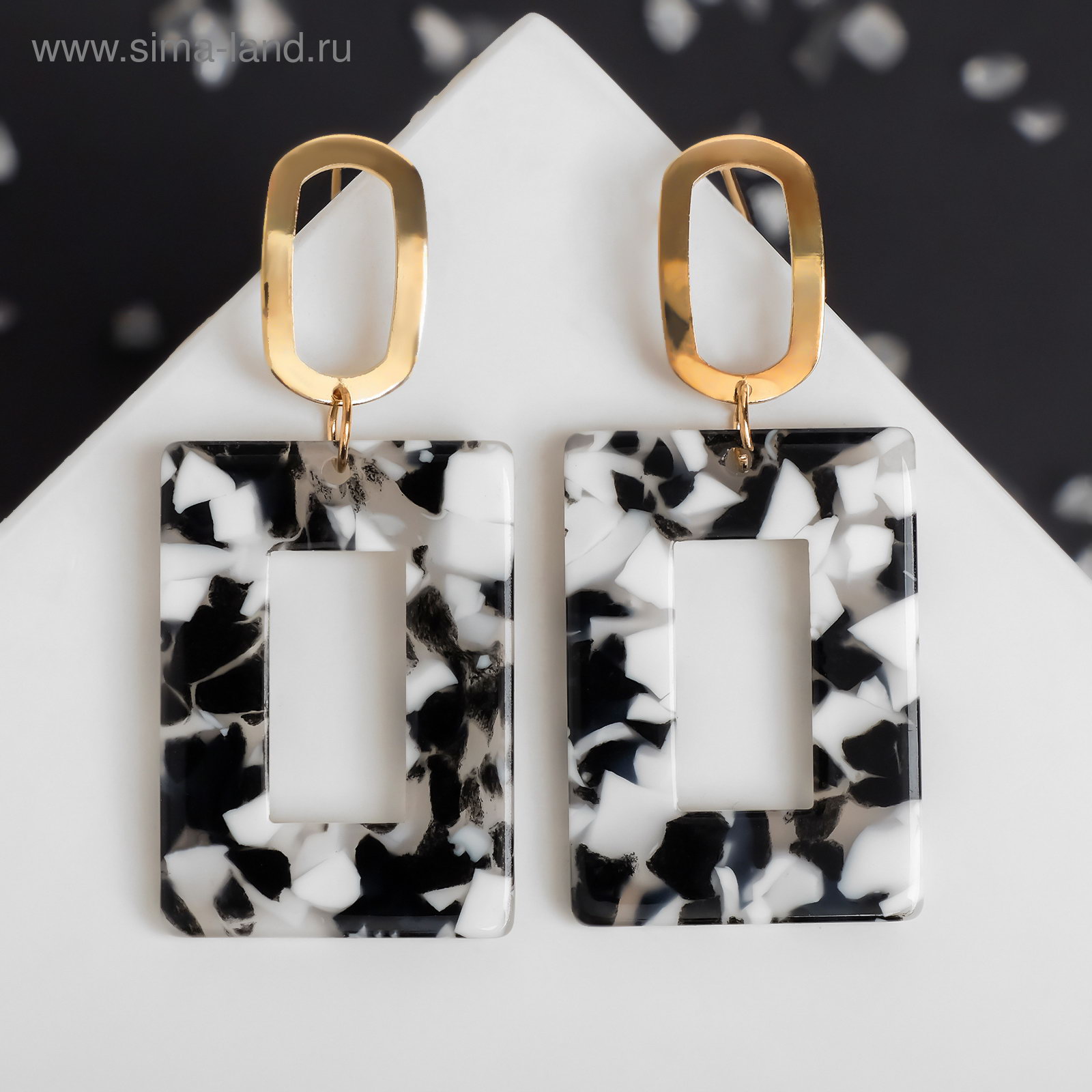 Серьги ассорти "Азелия" прямоугольник, цвет чёрно-белый в золоте, 2.5x5.3x0.5 см., QF, Китай