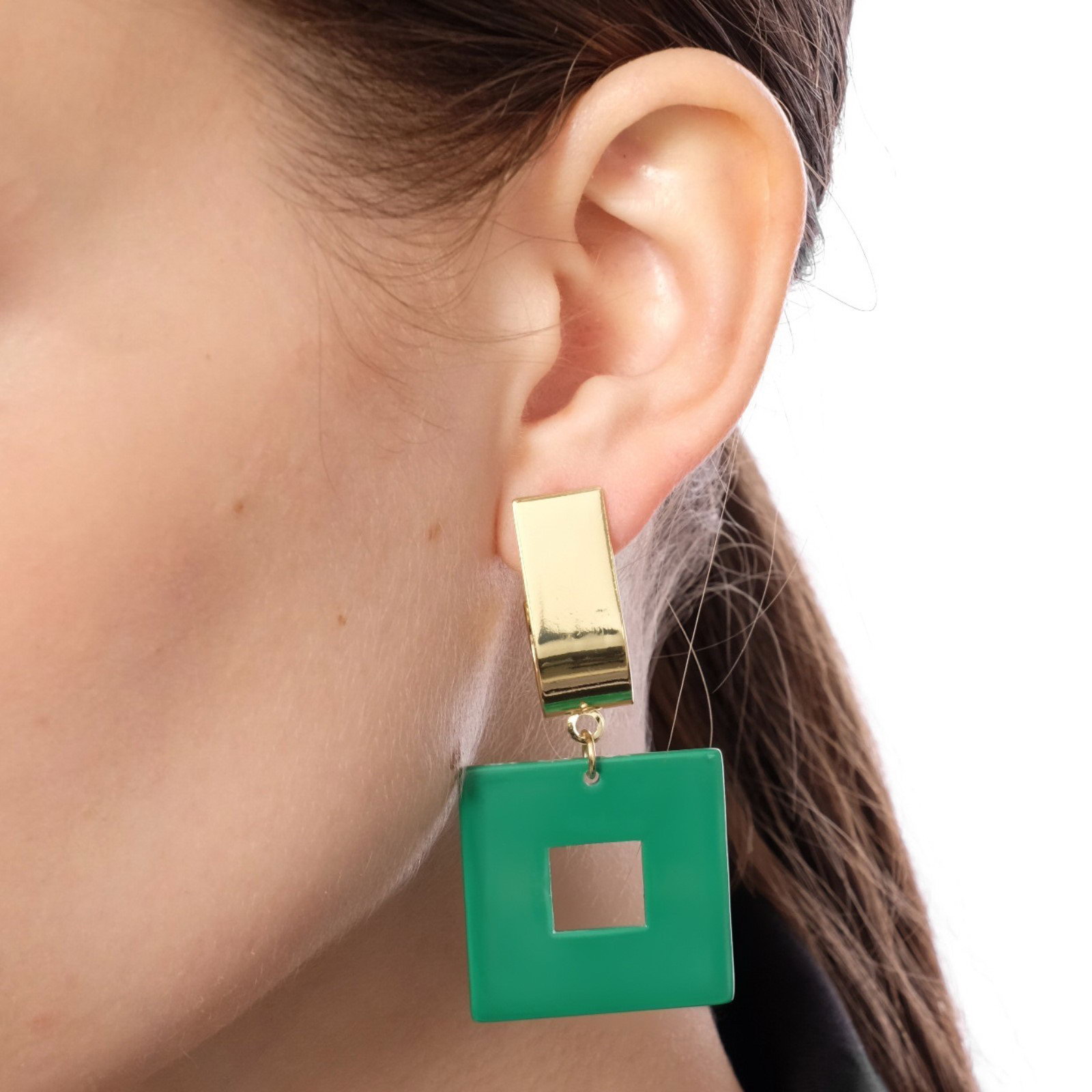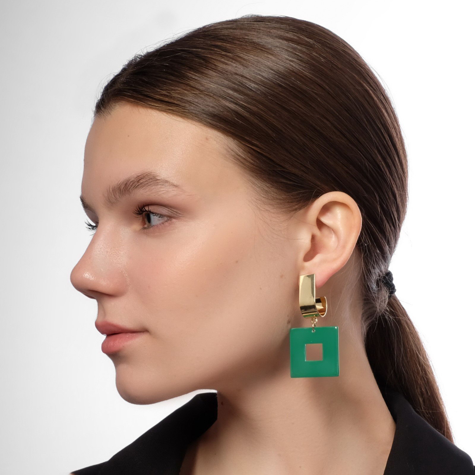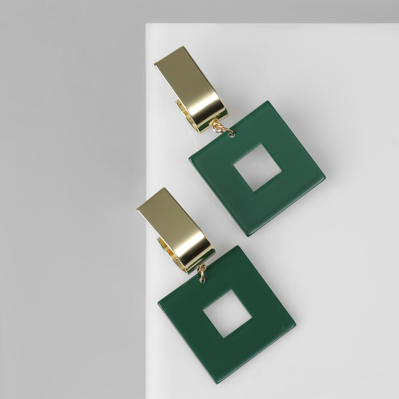Серьги ассорти "Азелия" квадрат, цвет зелёный в золоте, 3x5.7x1.5 см., QF, Китай