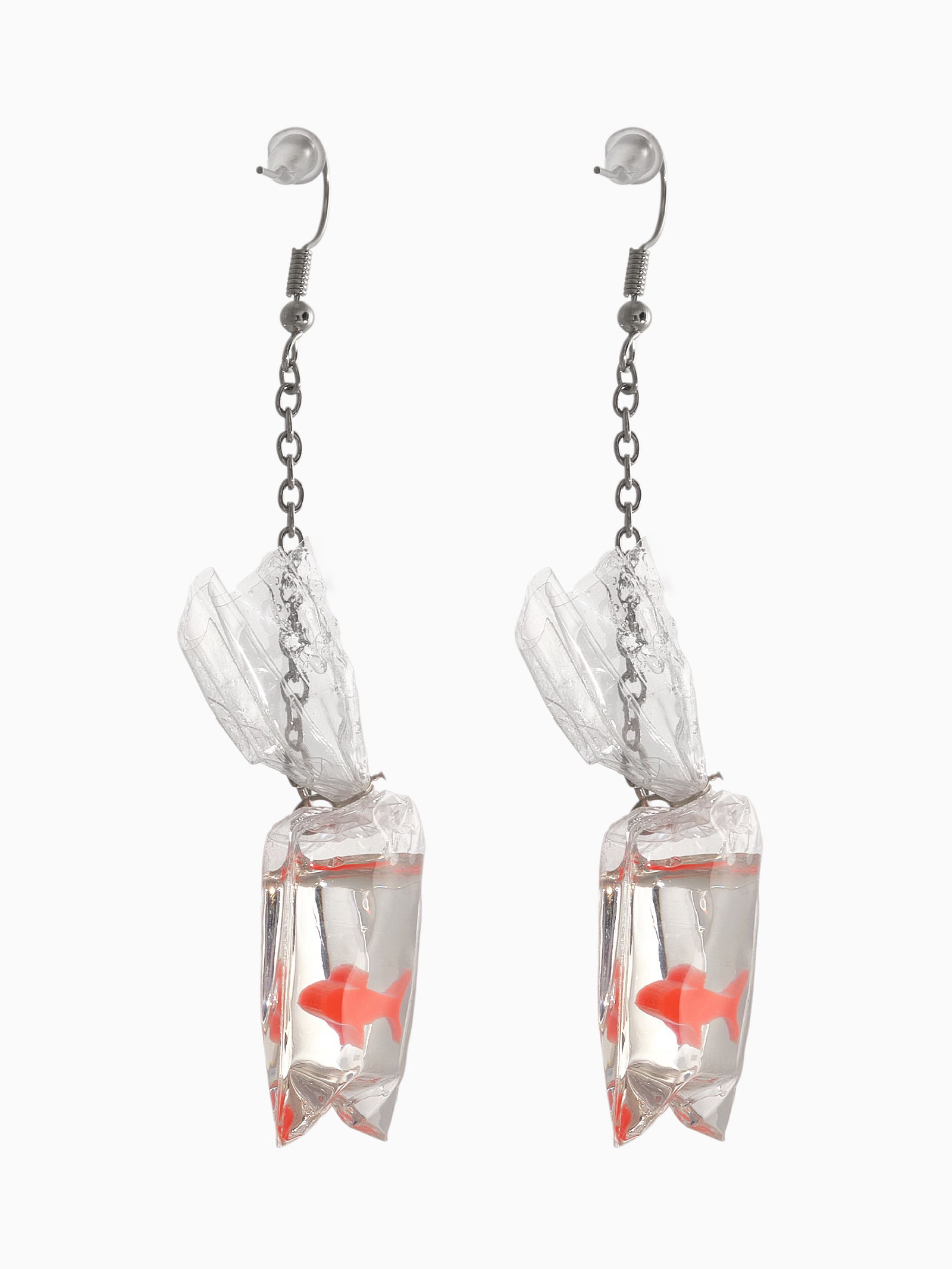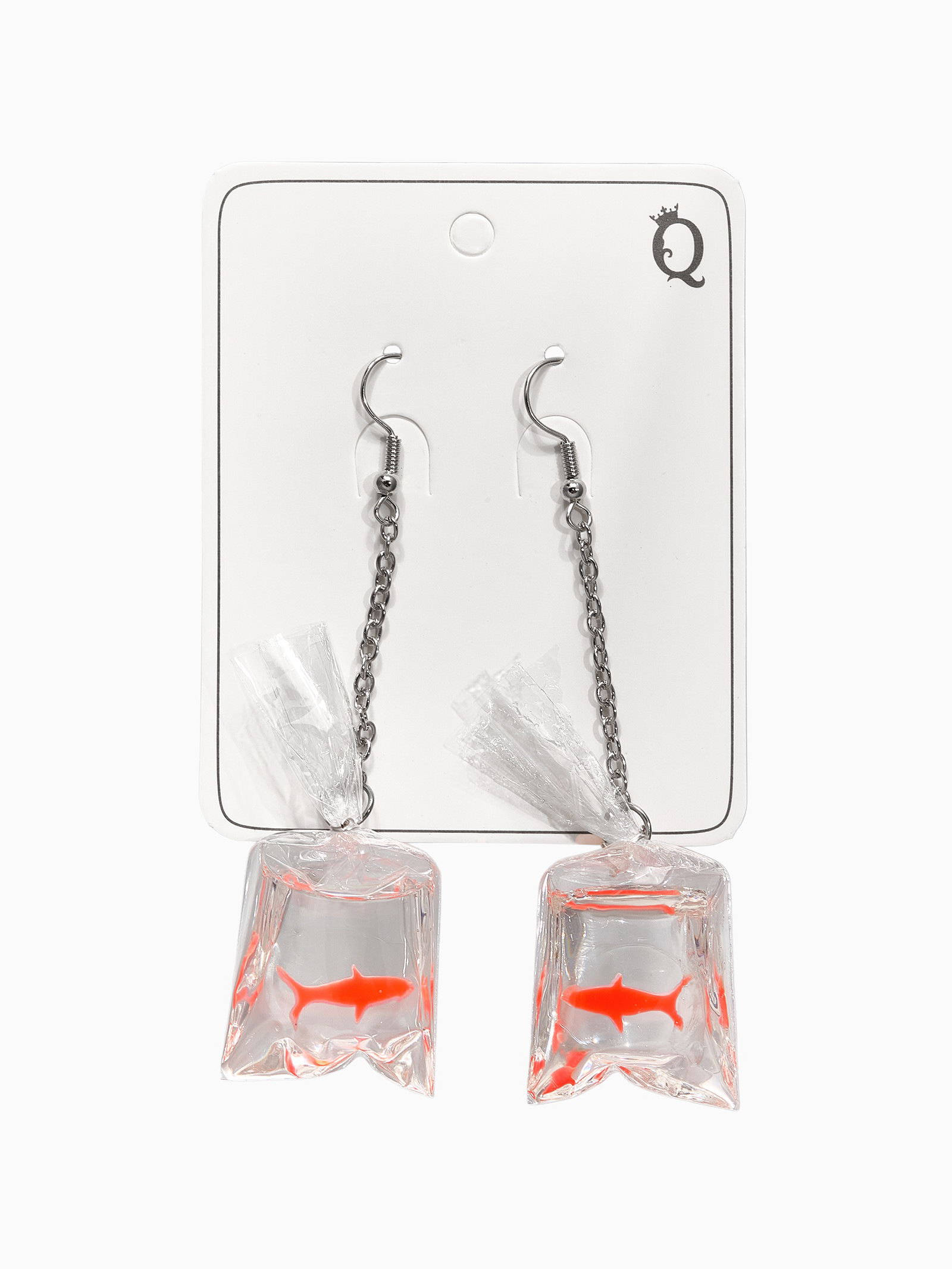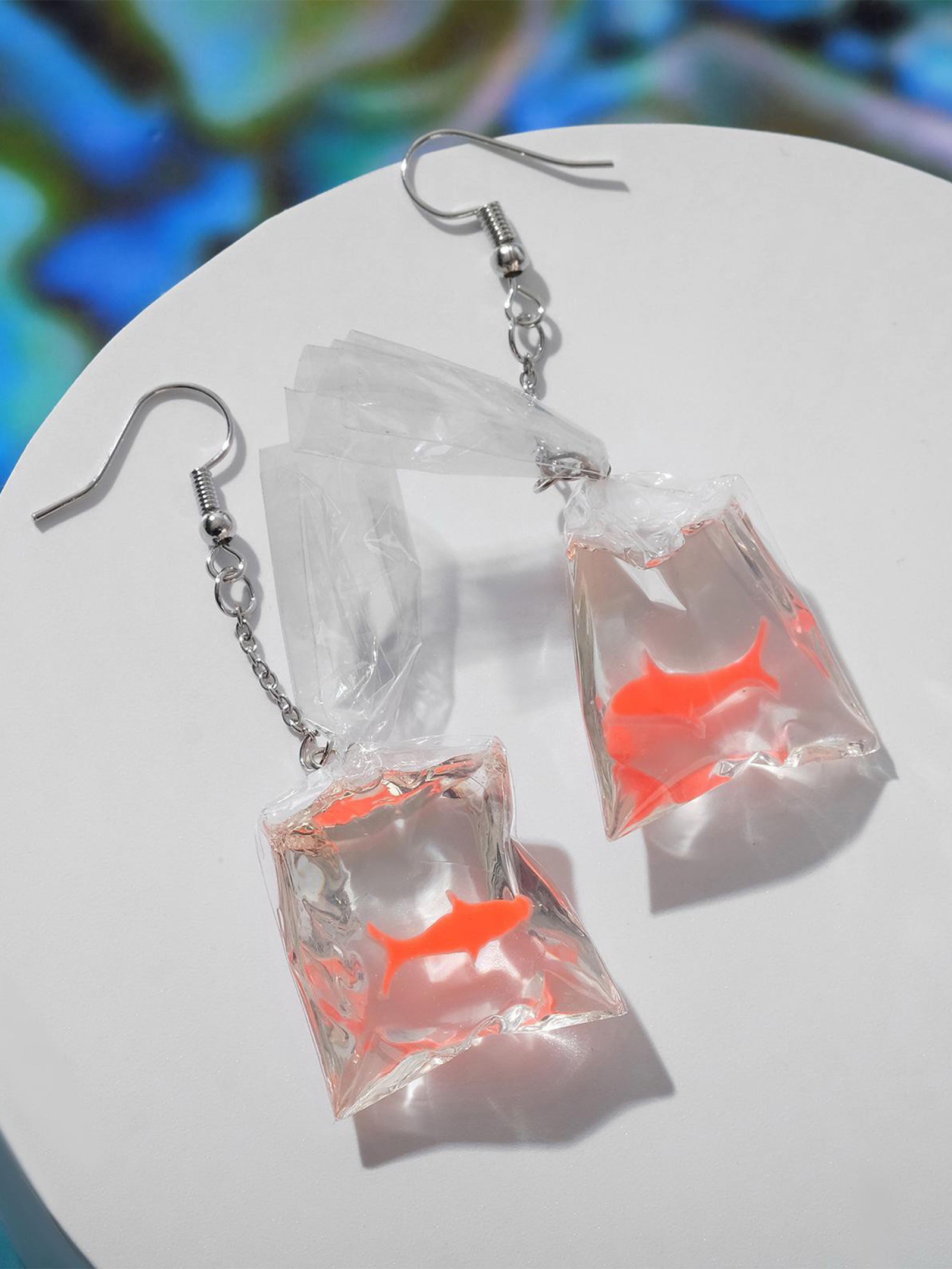 Серьги акриловые "Рыбка в пакете", оранжевые, 2x7.5x1 см., QF, Китай