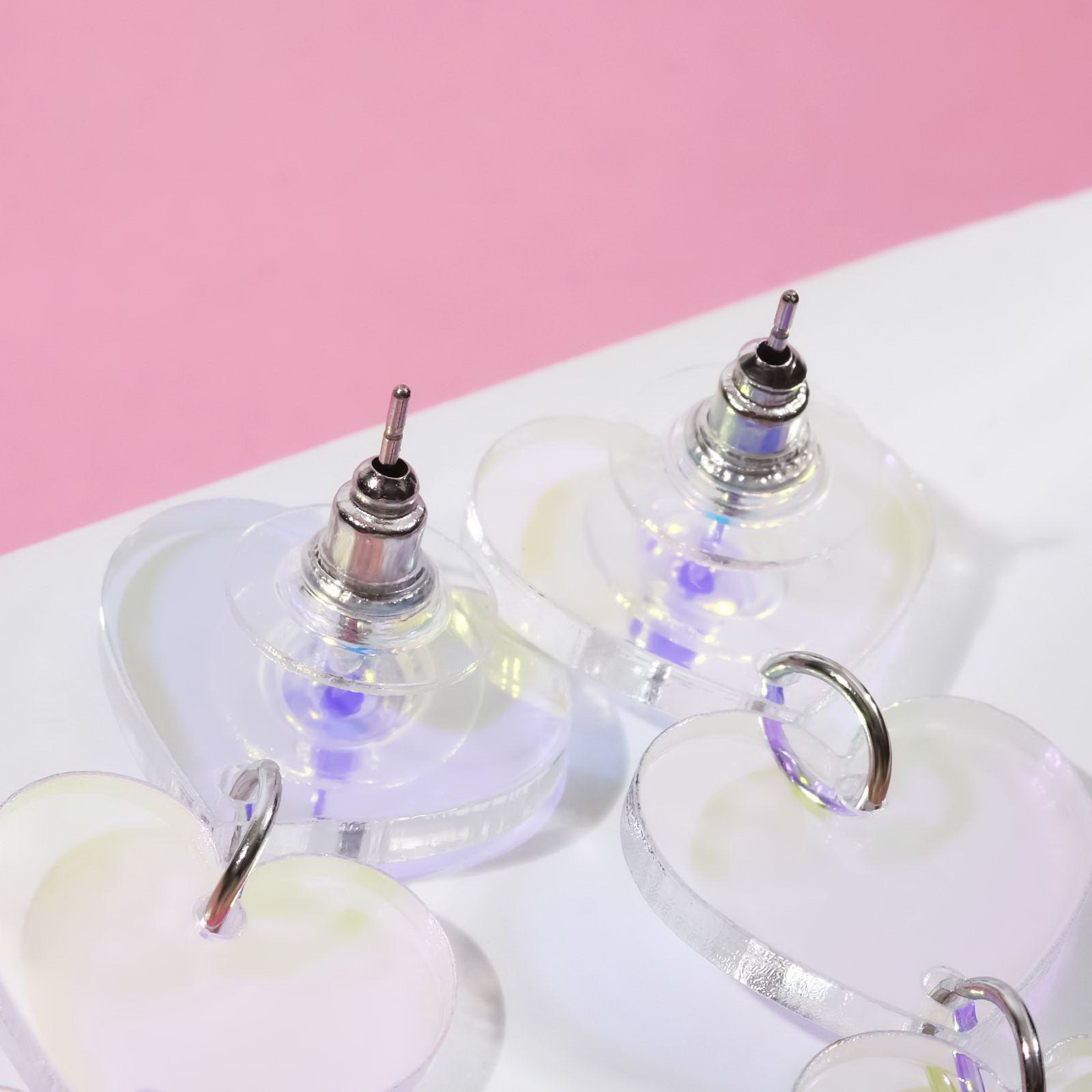 Серьги акриловые "Сияние" ряд сердечек, цвет голубой, 1.7x5.5x0.5 см., QF, Китай