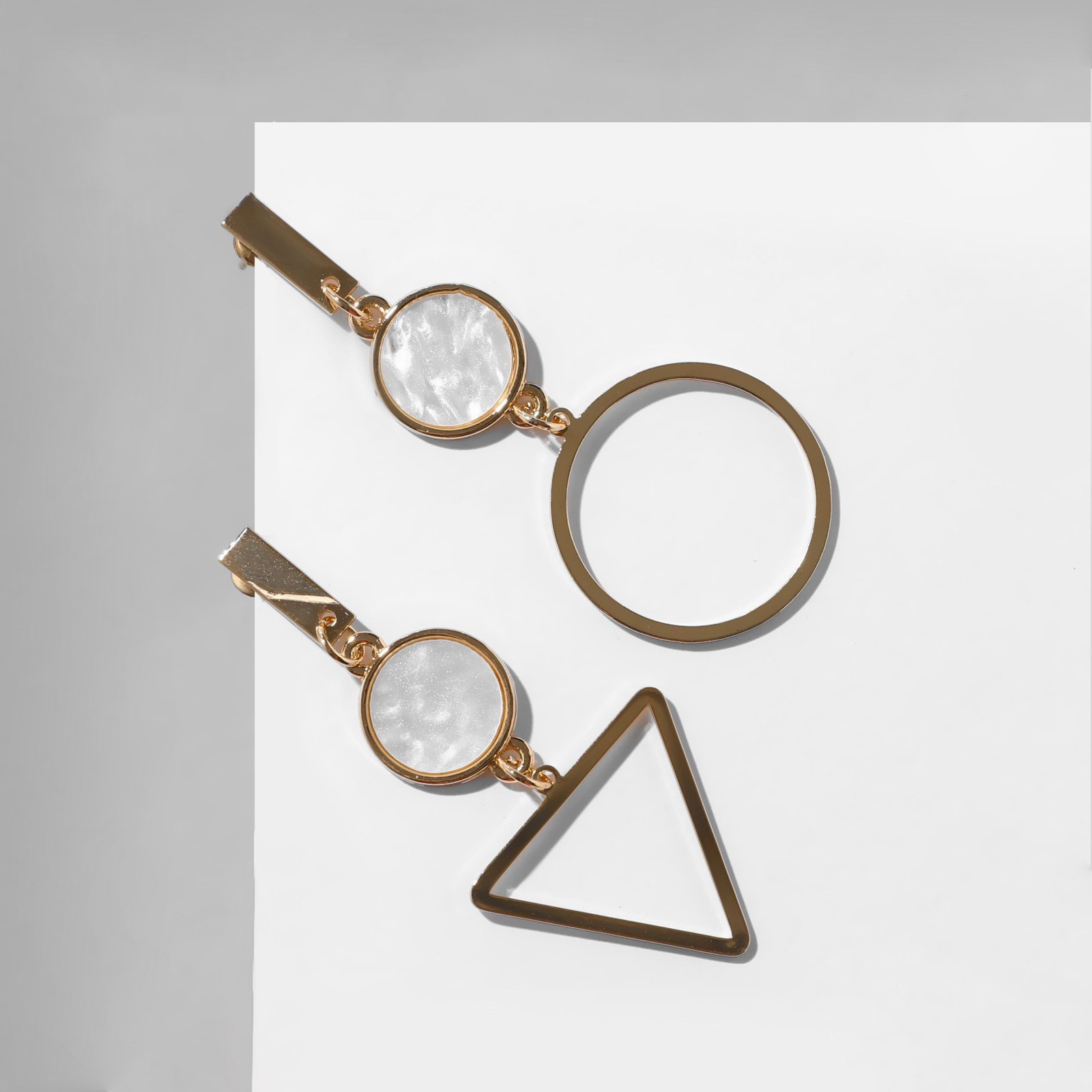 Серьги "Ракушка" треугольник полый, белые в золоте, 2.4x6.3x1.3 см., QF, Китай