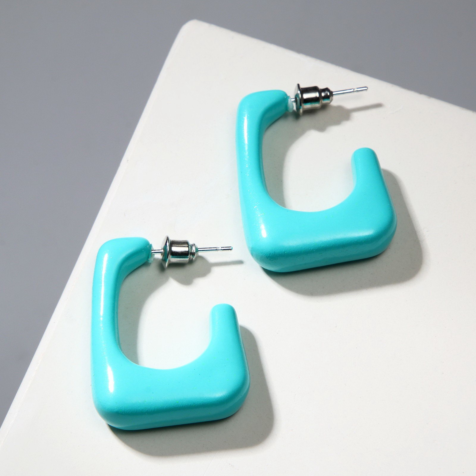 Серьги акриловые "Тренд" рамка, цвет морской, 0.6x3x2 см., QF, Китай