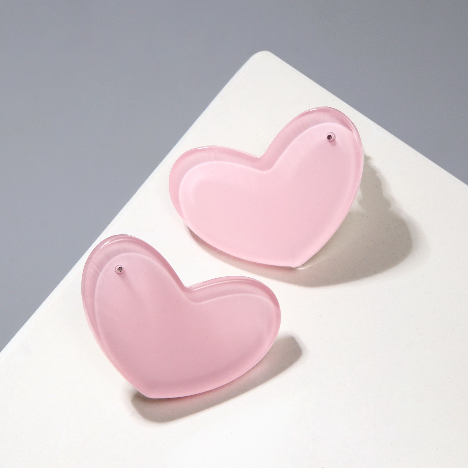 Серьги акриловые "Сердечки" широкие, цвет светло-розовый, 2x2.5x0.3 см., QF, Китай