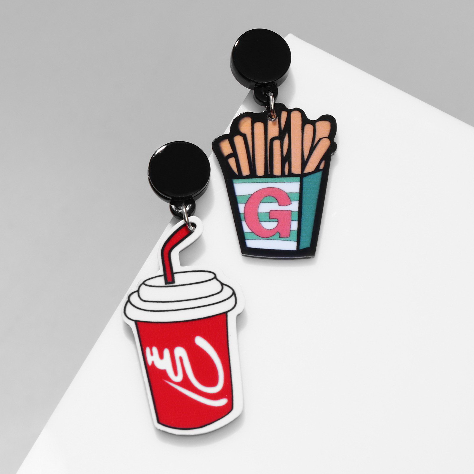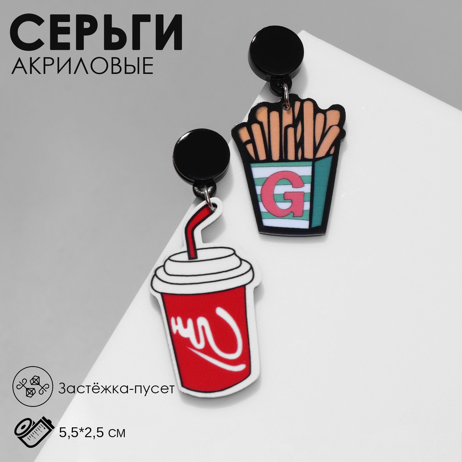 Серьги акрил "Еда" фаст-фуд, цветные в серебре, 2.5x5.5x0.3 см., Queen fair, Китай