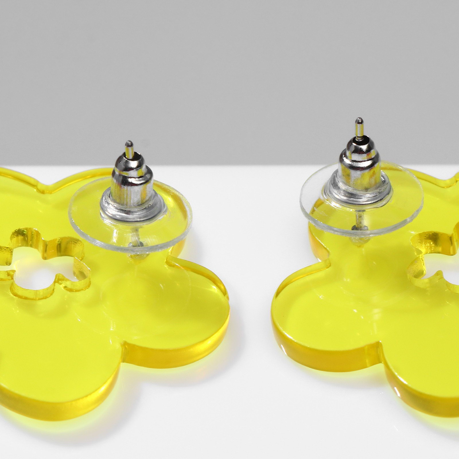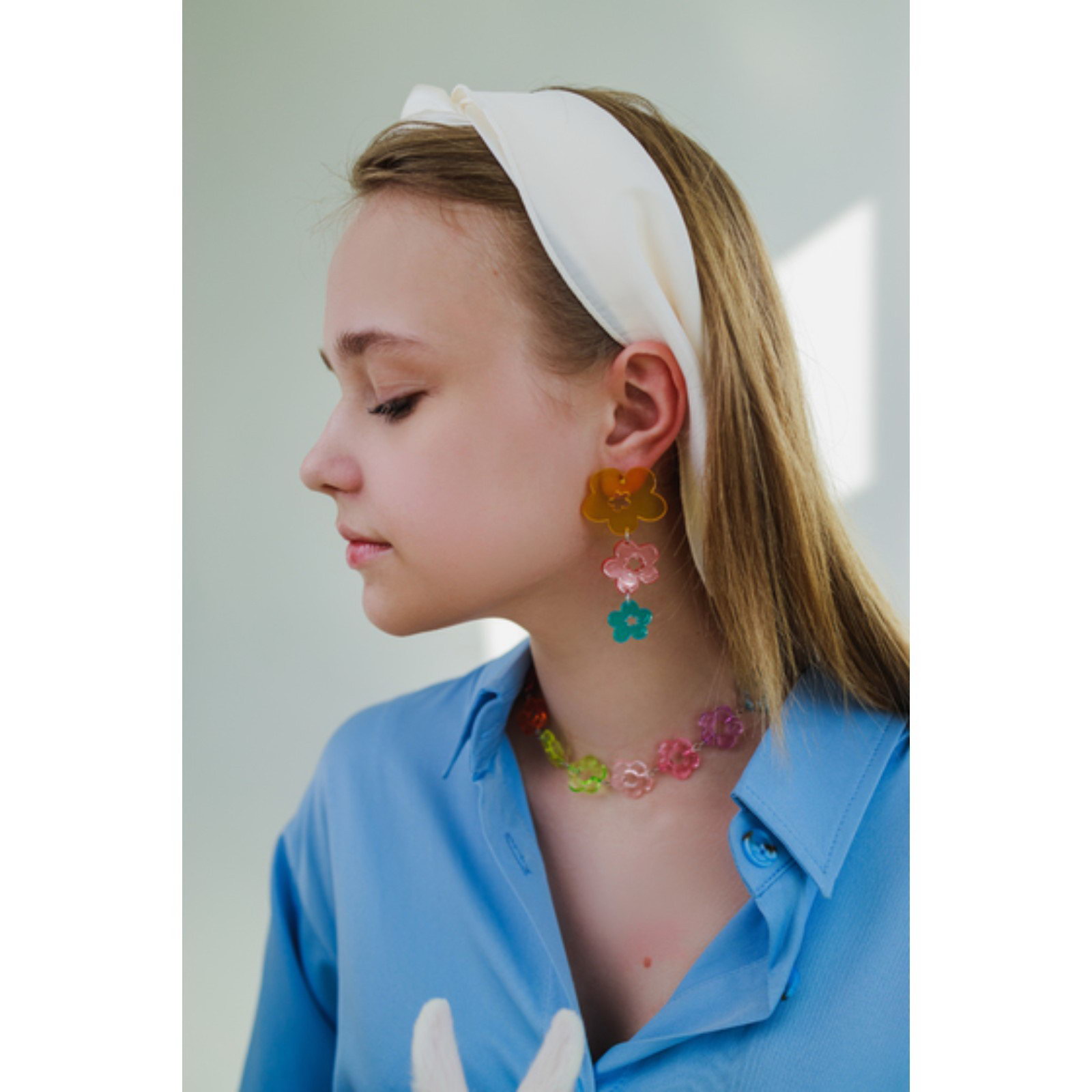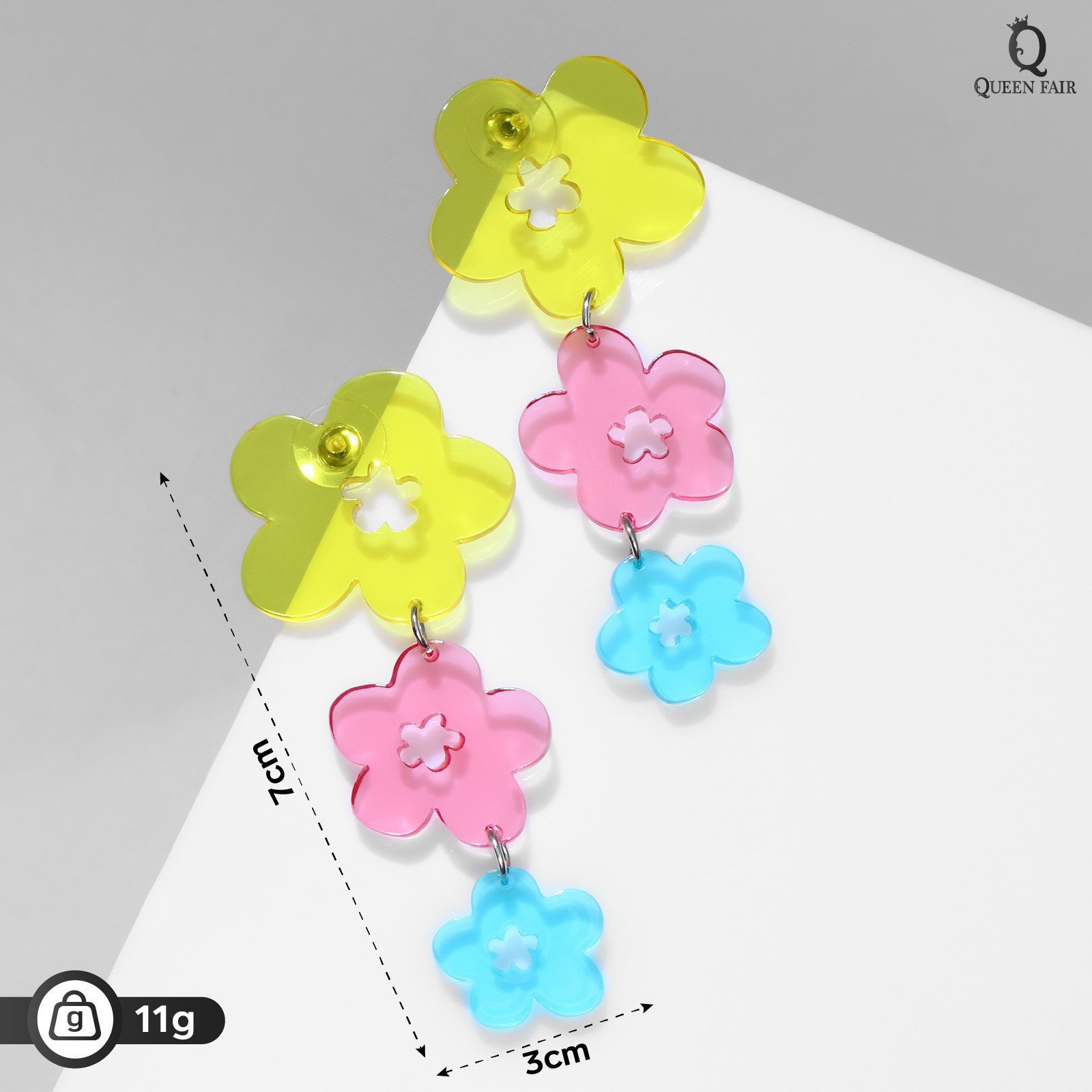 Серьги акриловые "Цветы" яркие, цветные в серебре, 3x7x0.3 см., QF, Китай