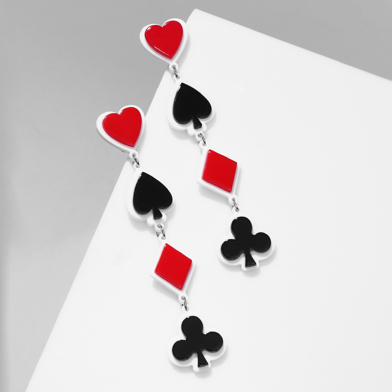 Серьги акриловые "Масть", цветные в серебре, 2x9.5x0.5 см., QF, Китай
