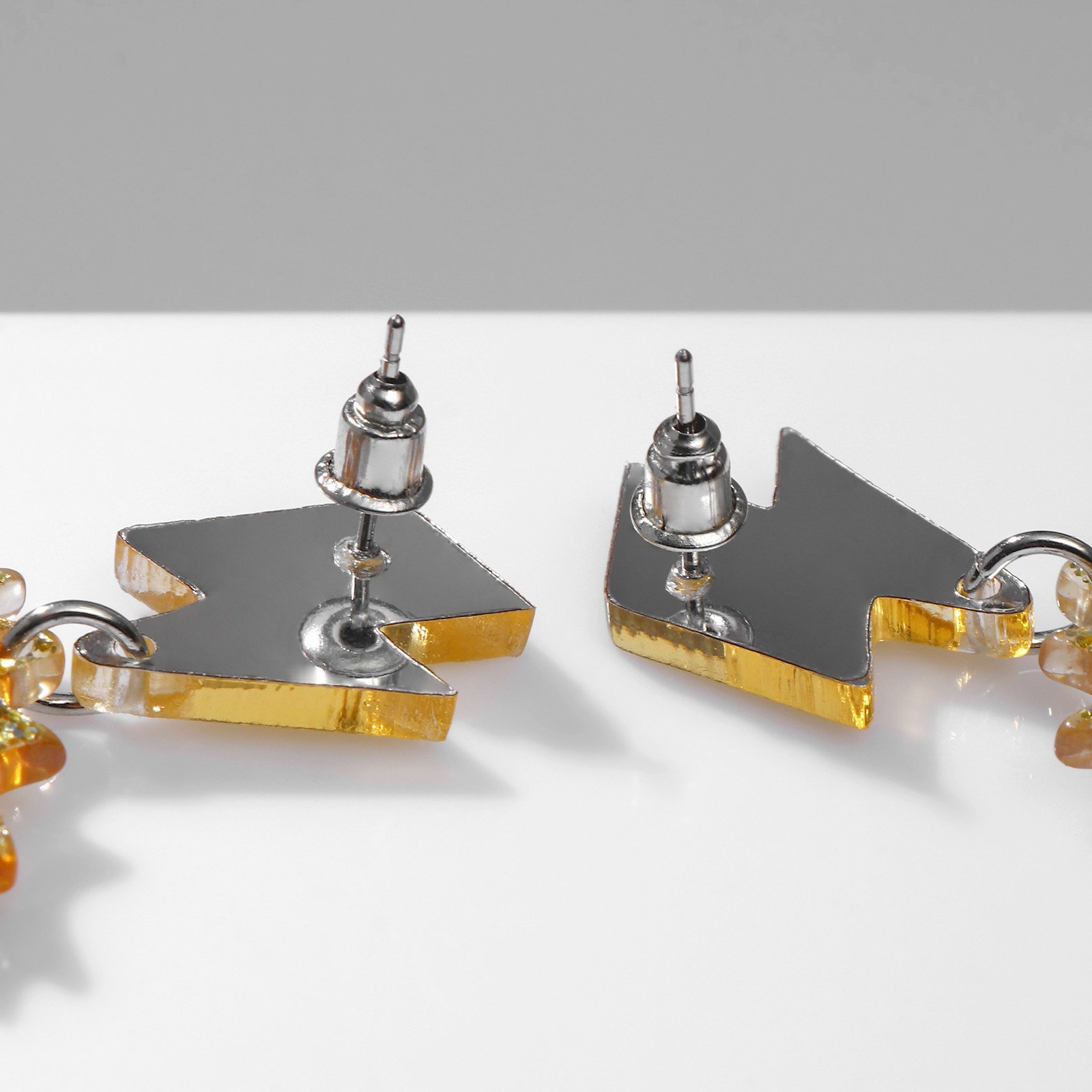 Для кого: Для девочки, Для женщины Вид: Серьги, Серьги Тематика: Хэллоуин, Яркая Размер упаковки: 6.5 x 1.5 x 8 см. Тематика праздника: Хэллоуин Материал основы: Металл Вид застёжки: Застёжка пусет (гвоздик) Возраст: Для взрослых Материал основания: Металл Составляющие набора: Серьги Тематика подарка: Бижутерия tnved: 7117900000 Длина, см: 6.5 Цвет фурнитуры: Серебряный Цвет: Жёлтый Вставка/Подвеска: Акрил Набор: Нет Стильные серьги с акриловыми элементами в виде белой молнии на золотистой металлической основе эффектный аксессуар длиной 6,5 см для женщин и девочек. Они органично вписываются в тематику Хэллоуина и добавляют образу динамичности и яркости. Особенности