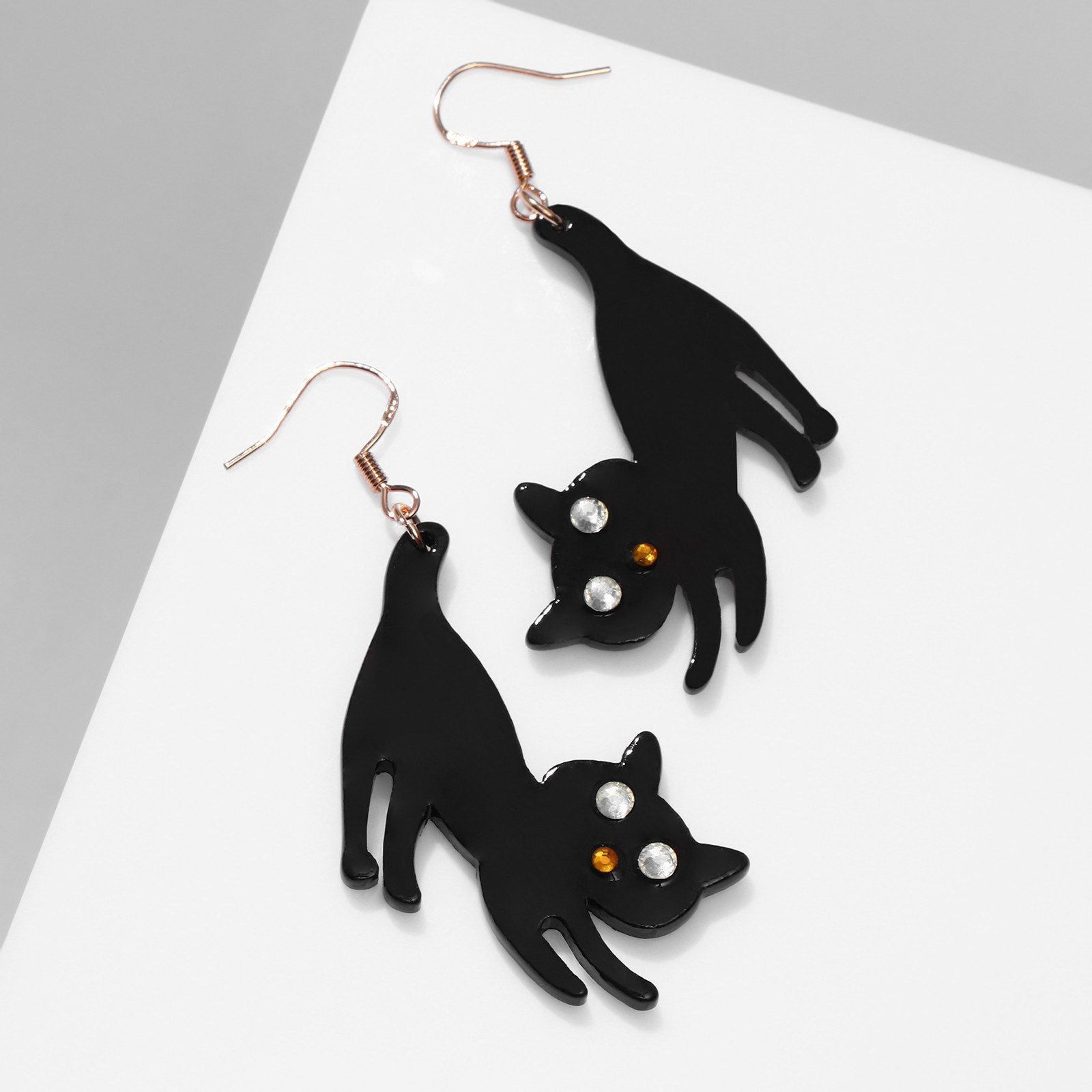 Серьги акриловые "Кот" хвостатый, цвет чёрный в золоте, 2.5x5.5x0.3 см., QF, Китай