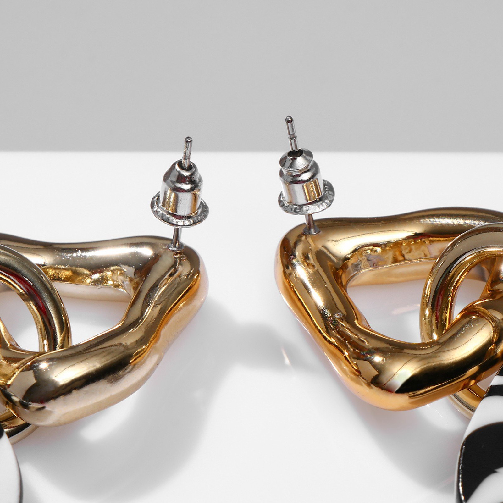 Серьги акриловые "Зебра" цепи, цвет чёрно-белый в золоте, 4x6.5x0.5 см., QF, Китай