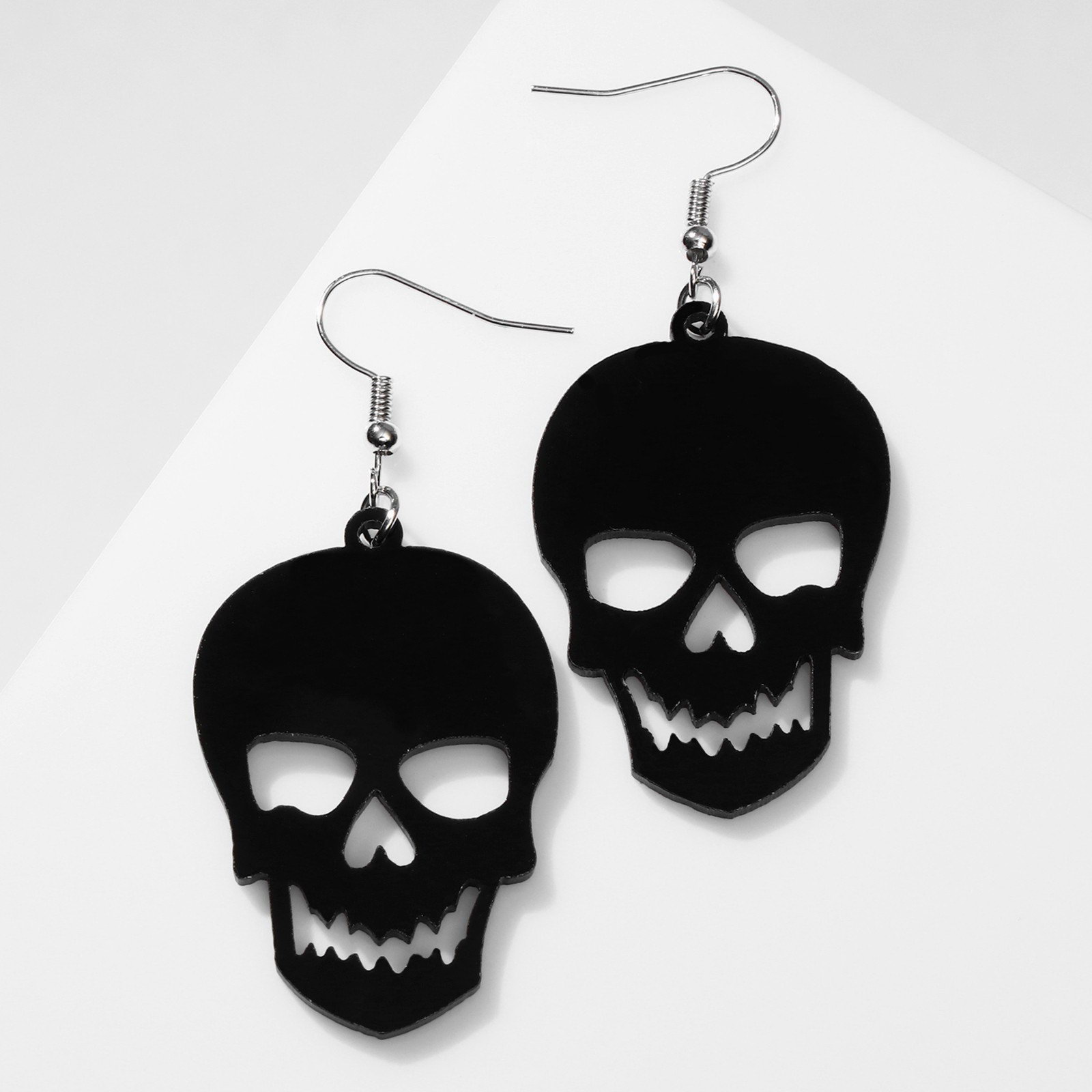 Серьги акриловые "Черепа" большие, цвет чёрный в серебре, 3x6.5x0.3 см., QF, Китай