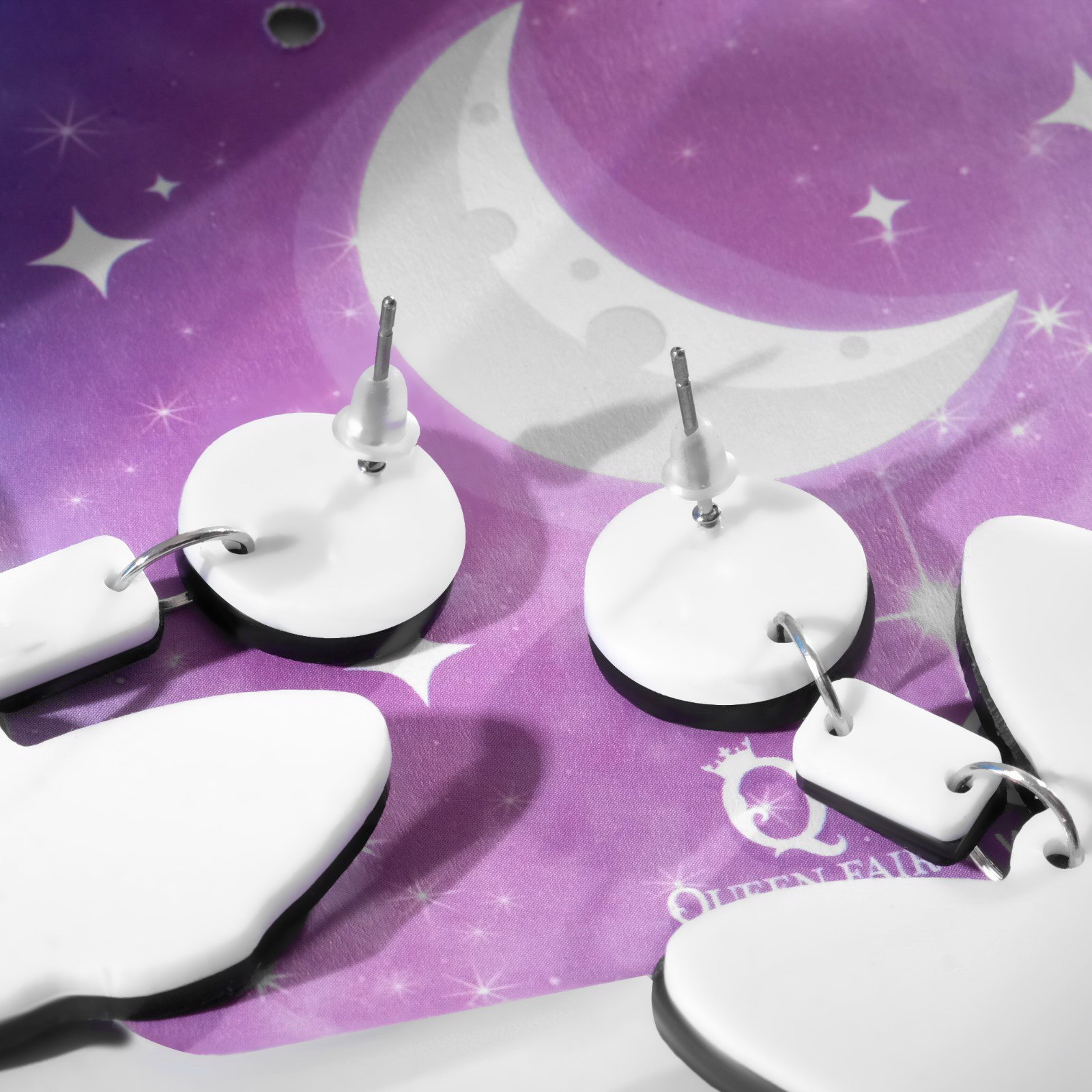 Серьги акриловые "Кот сфинкс", чёрно-белые в серебре, 5.5x4x1 см., QF, Китай